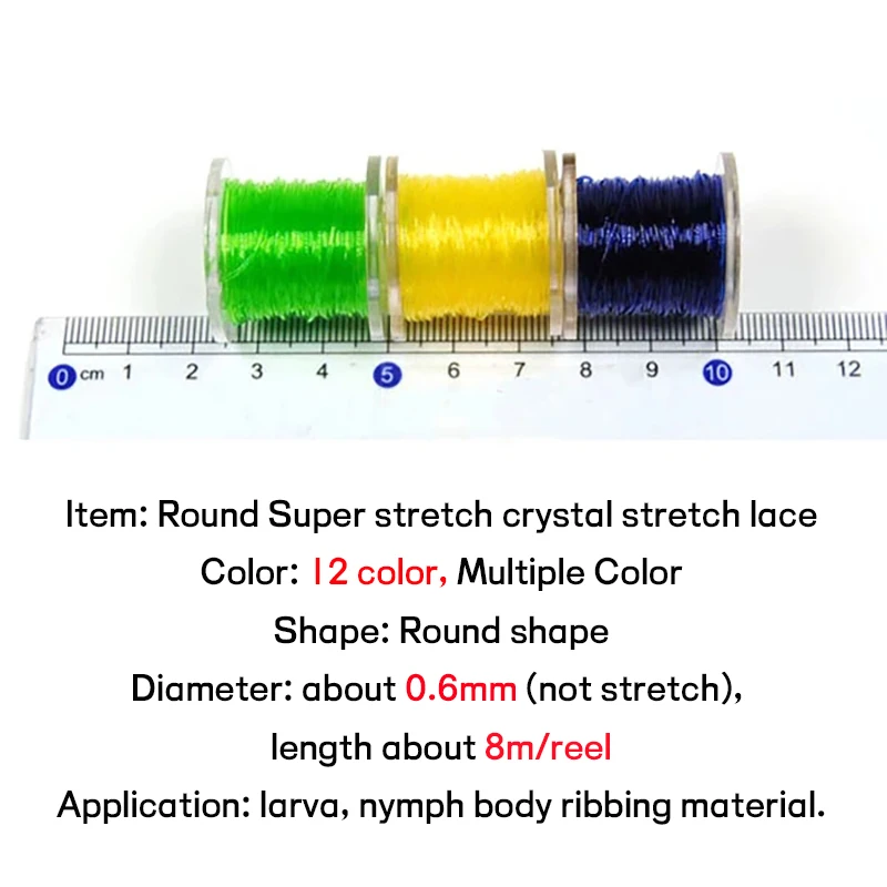 Wifreo Clear Stretch Rib Round Larvae Lace Ninfa Ribbing Material Body Fly Tying Line Verde Rojo Marrón Múltiples colores