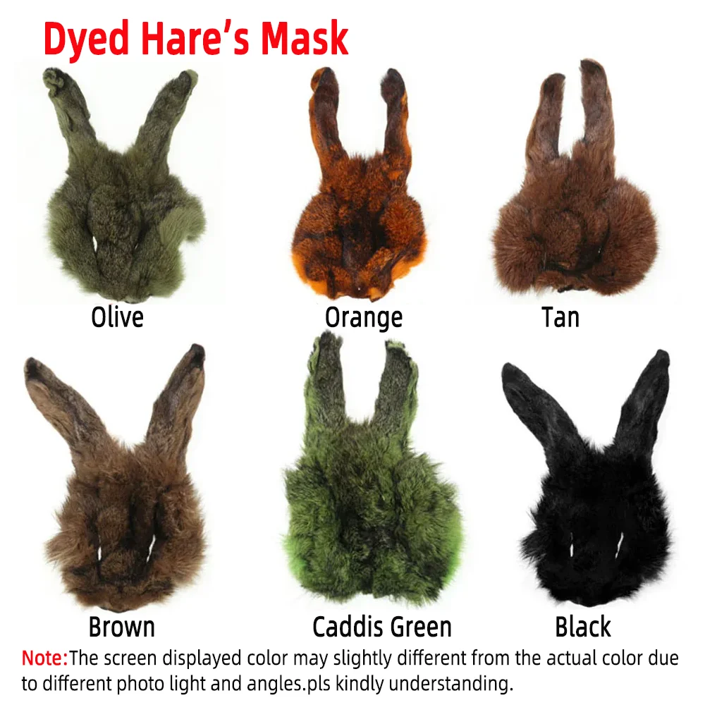 Color teñido: Oliva, Verde Caddy, Negro, Marrón, Bronceado, Naranja como opción.(Debido al proceso de teñido a alta temperatura, la mascarilla de lebre teñida será más pequeña que el color natural)