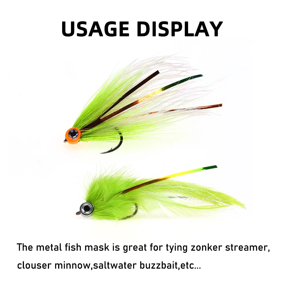 La máscara de pez de metal es ideal para atar streamer zonker, pececillos clouser, buzzbait de agua salada, etc.