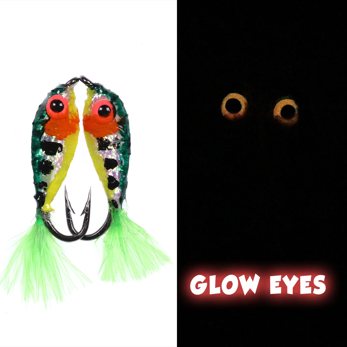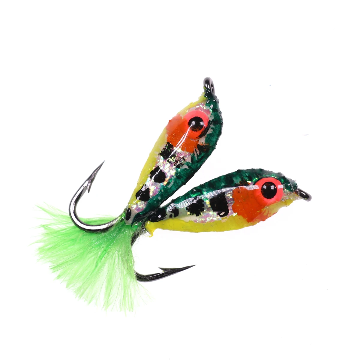 Wifreo 2PCS#10 Mini Minnow Fly 3D ojos brillantes Minnow cebo peces flores de imitación trucha de agua dulce mosca pesca moscas
