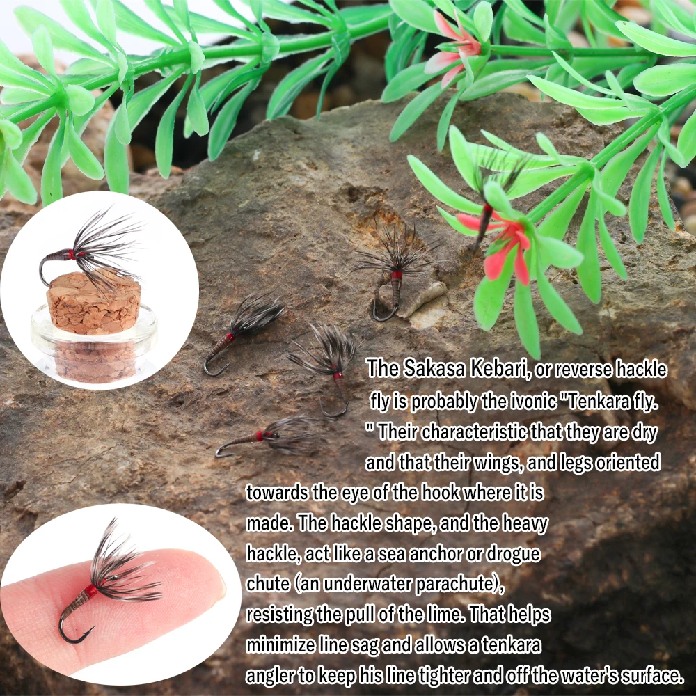 Wifreo 6pcs Fly Fishing (Umbrella Reverse Hackle) Tenkara Flies Kebari Trout Steelhead Grayling Fishing Dry Fly Floating Flies Trout Fishing Lure Bait