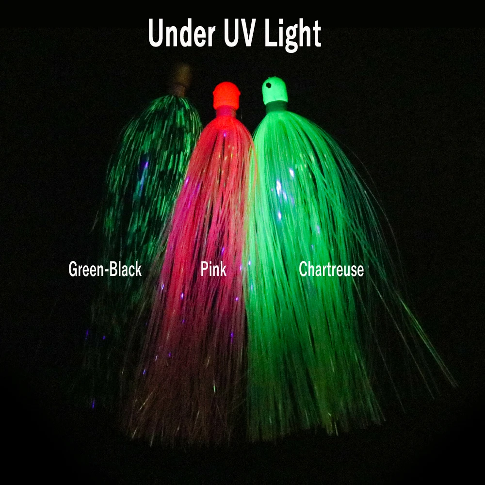 -El flash teaser terminado con un cabezal de plantilla HOLLOW de 0,34 oz para curricán de alta velocidad y están en los colores más populares (verde/azul/púrpura/rosa/juego blanco)