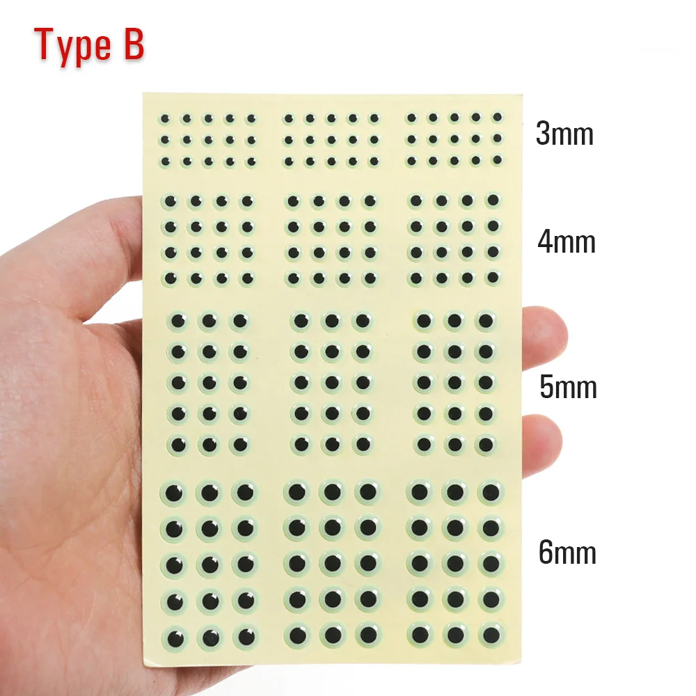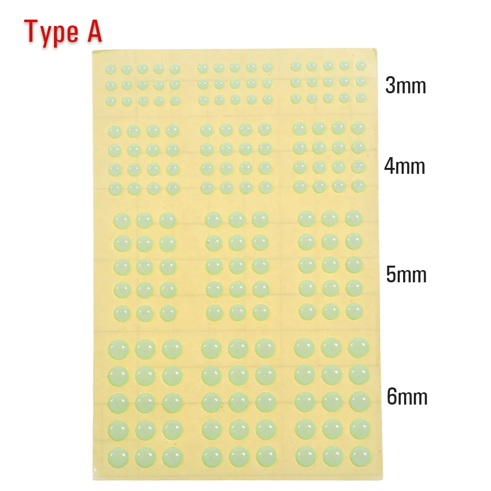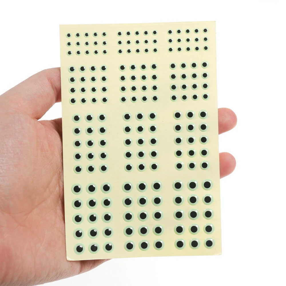 Características: ojos de pez 3D brillantes en la oscuridad con respaldo de pegamento