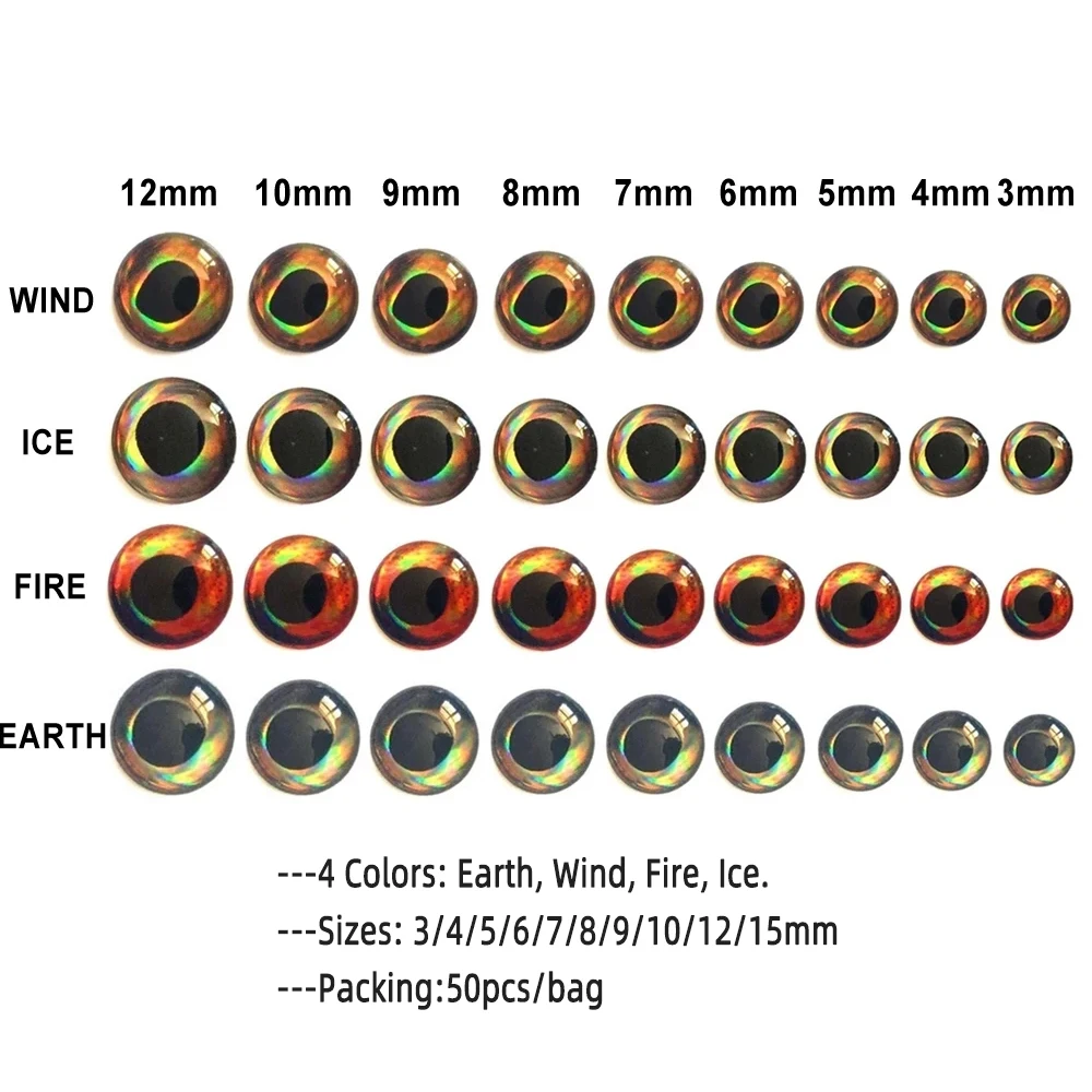 Wifreo-Ojos de pez holográficos 3D/4D para atado de moscas, Señuelos de Pesca realistas, accesorios, Material de 3mm-15mm