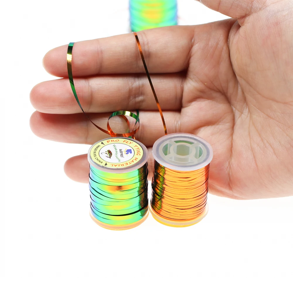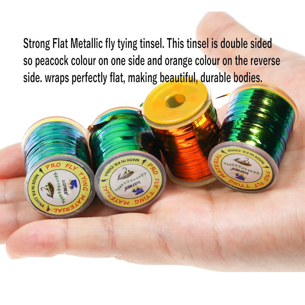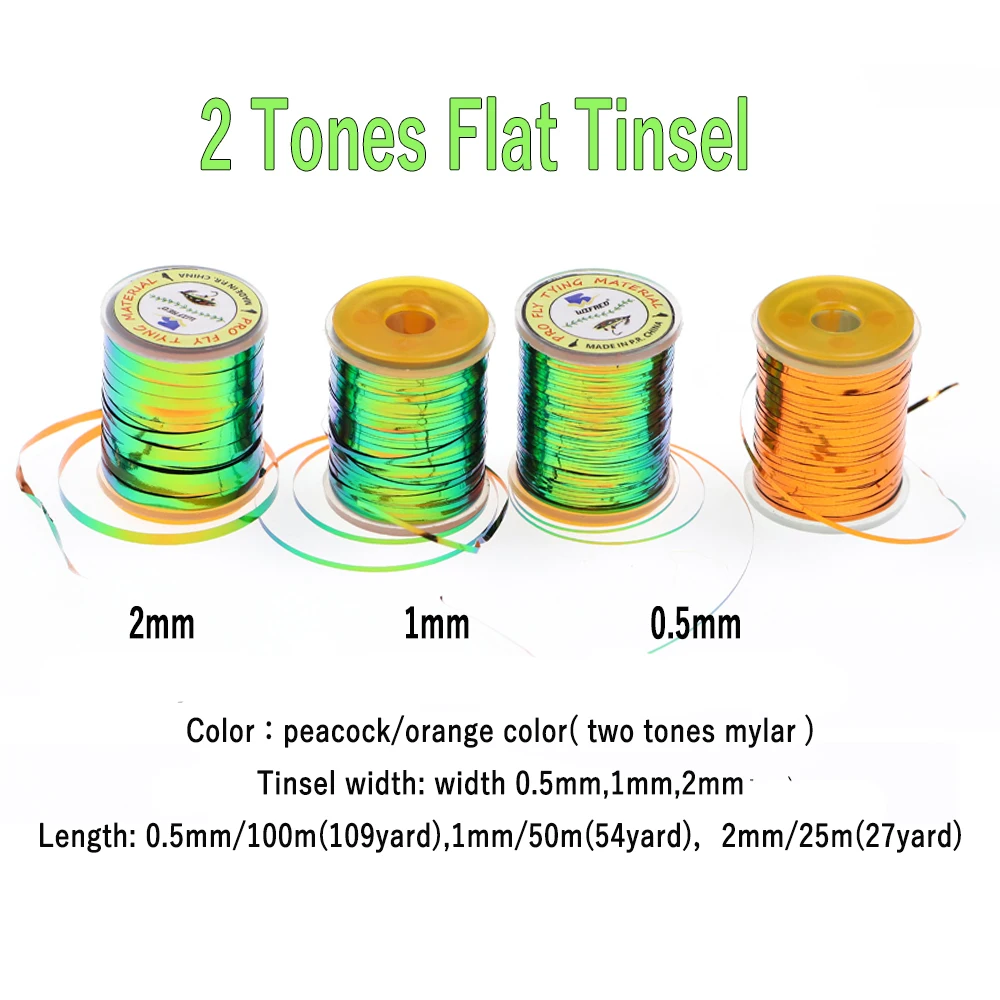 Wifreo Peacock Orange Tinsel 2 Tone Mylar Tinsel Durable Metálico Cuerpo plano Materiales para atar moscas para zumbador Nymph Midges