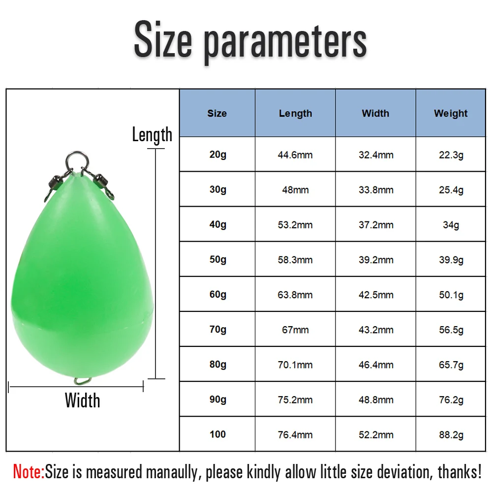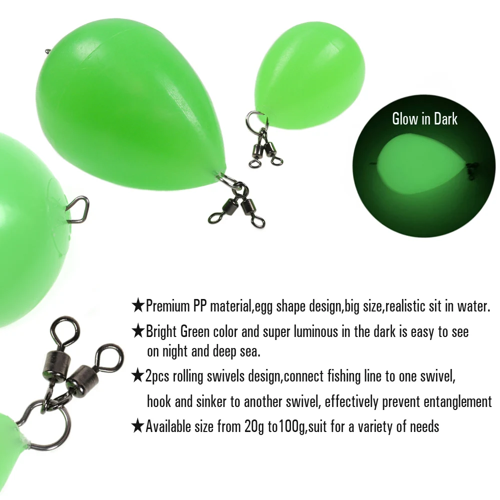 Wifreo 3 uds pesca nocturna PP sólido luminoso pesca flotante flotante en forma de huevo bola de poder flotante impulso flotante peces flotantes 20g a 100g
