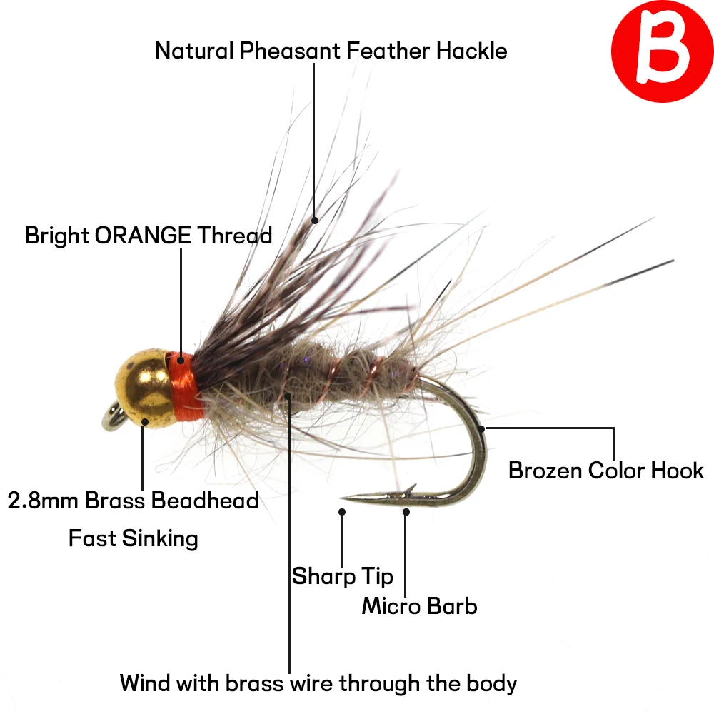 WIFREO 24 unids/caja de hundimiento rápido Leisenring Spider Fly Tungsteno/latón Beadhead Jig marrón Perdigon ninfas para trucha Grayling señuelos