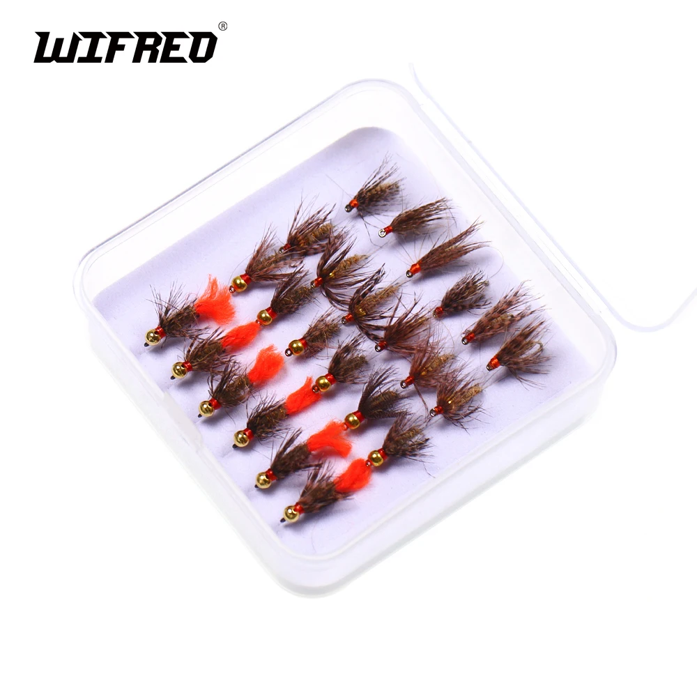 WIFREO 24 unids/caja de hundimiento rápido Leisenring Spider Fly Tungsteno/latón Beadhead Jig marrón Perdigon ninfas para trucha Grayling señuelos