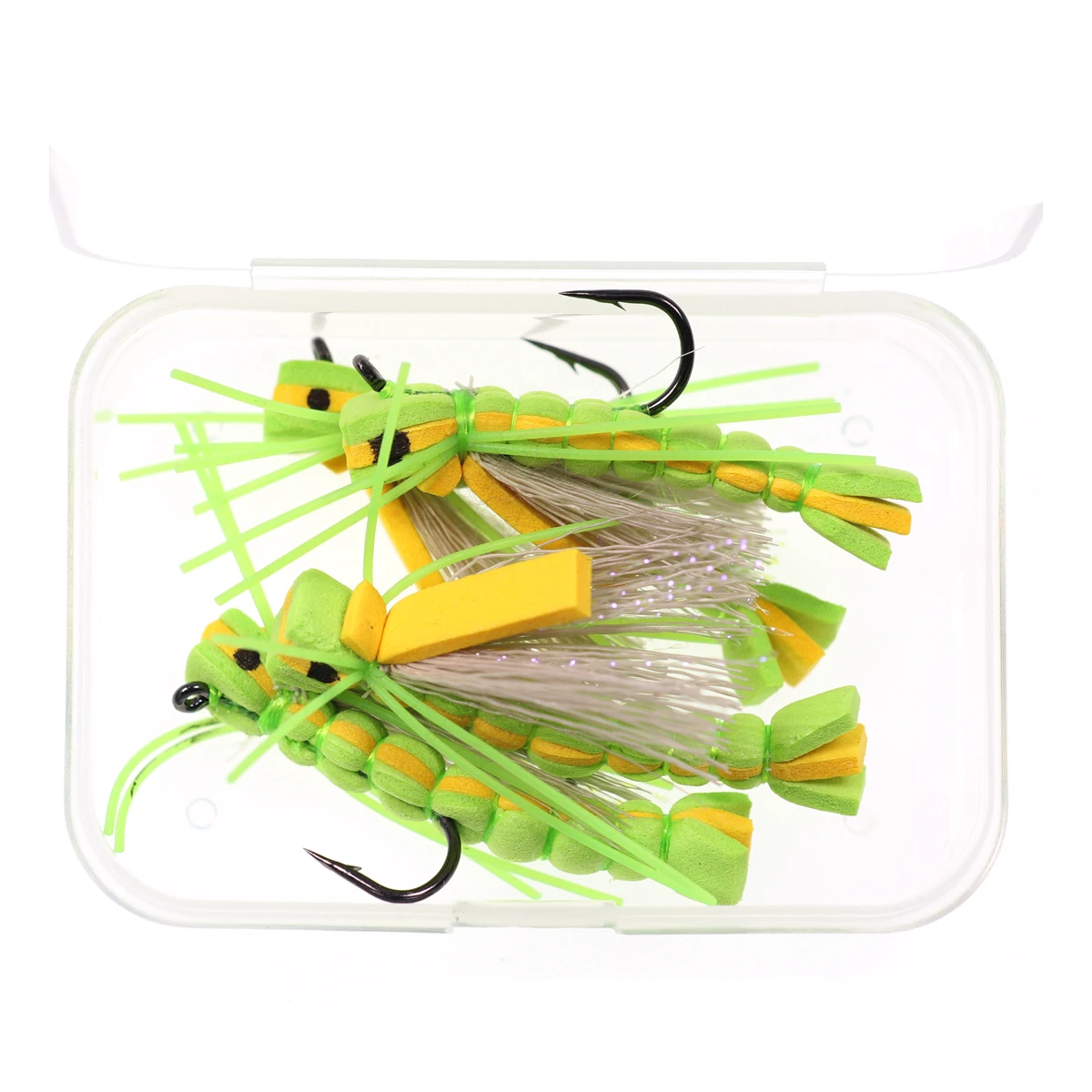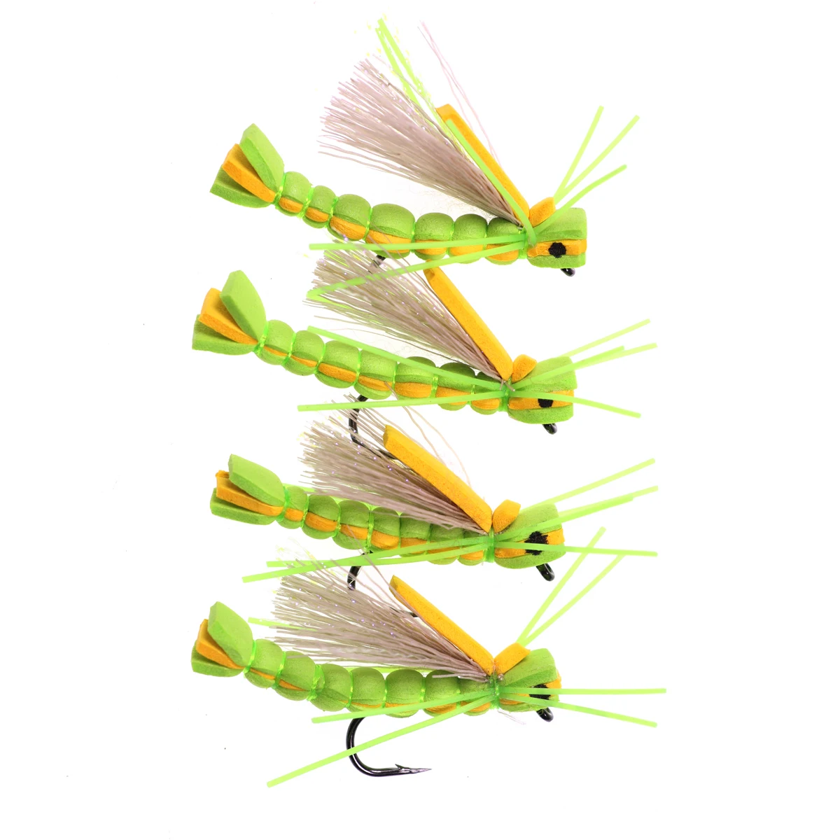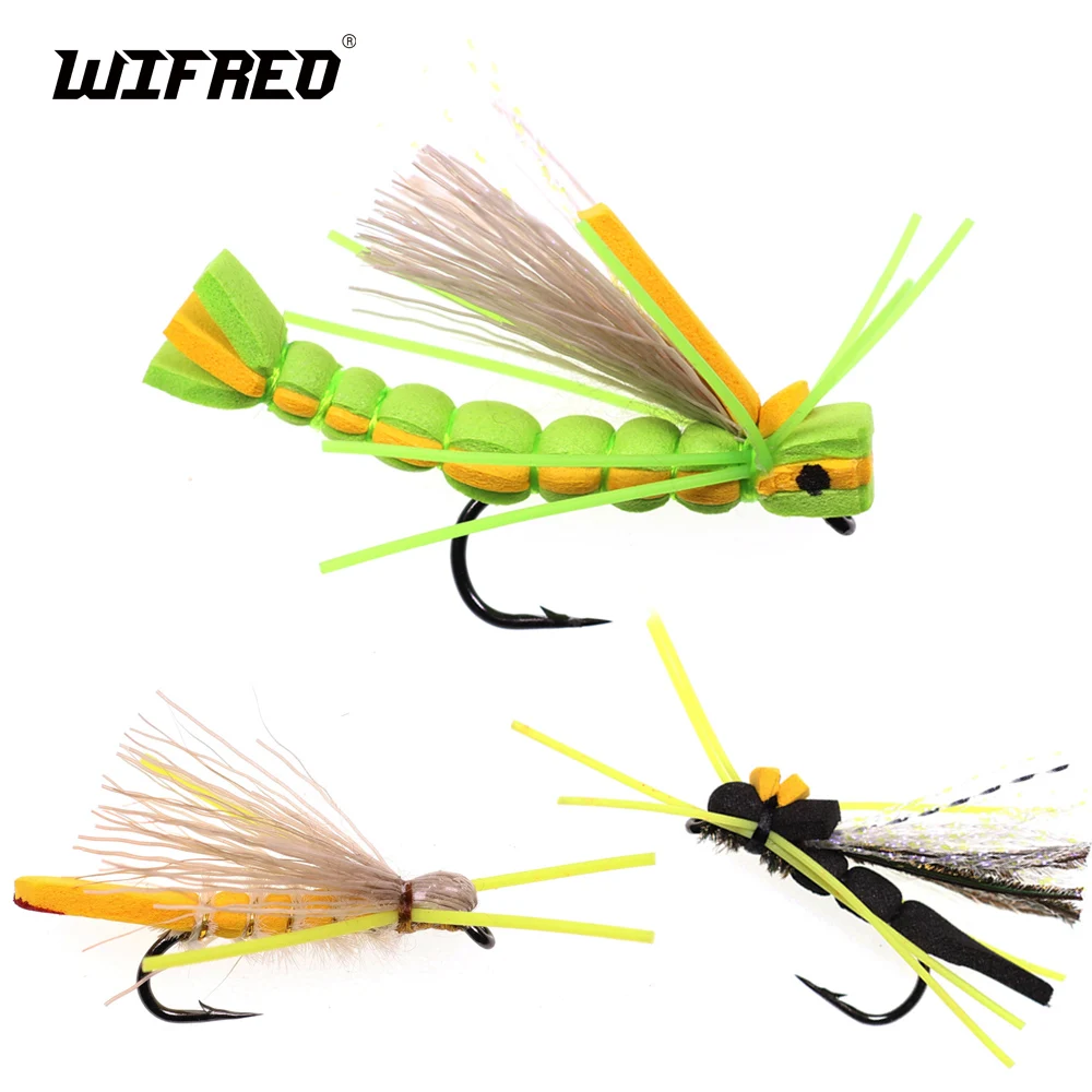 Wifreo 4 Uds trucha mosca cuerpo de espuma saltamontes mosca seca arcoíris trucha lubina percha mosca pesca moscas flotante espuma señuelos tolva mosca #4