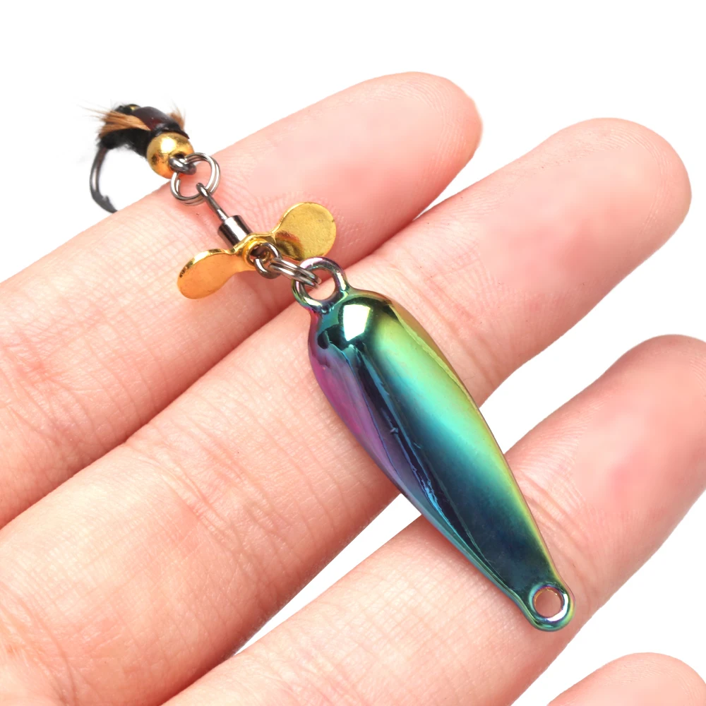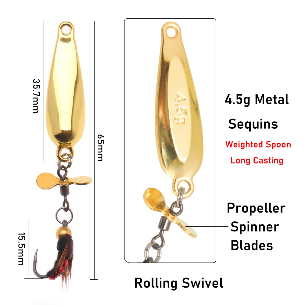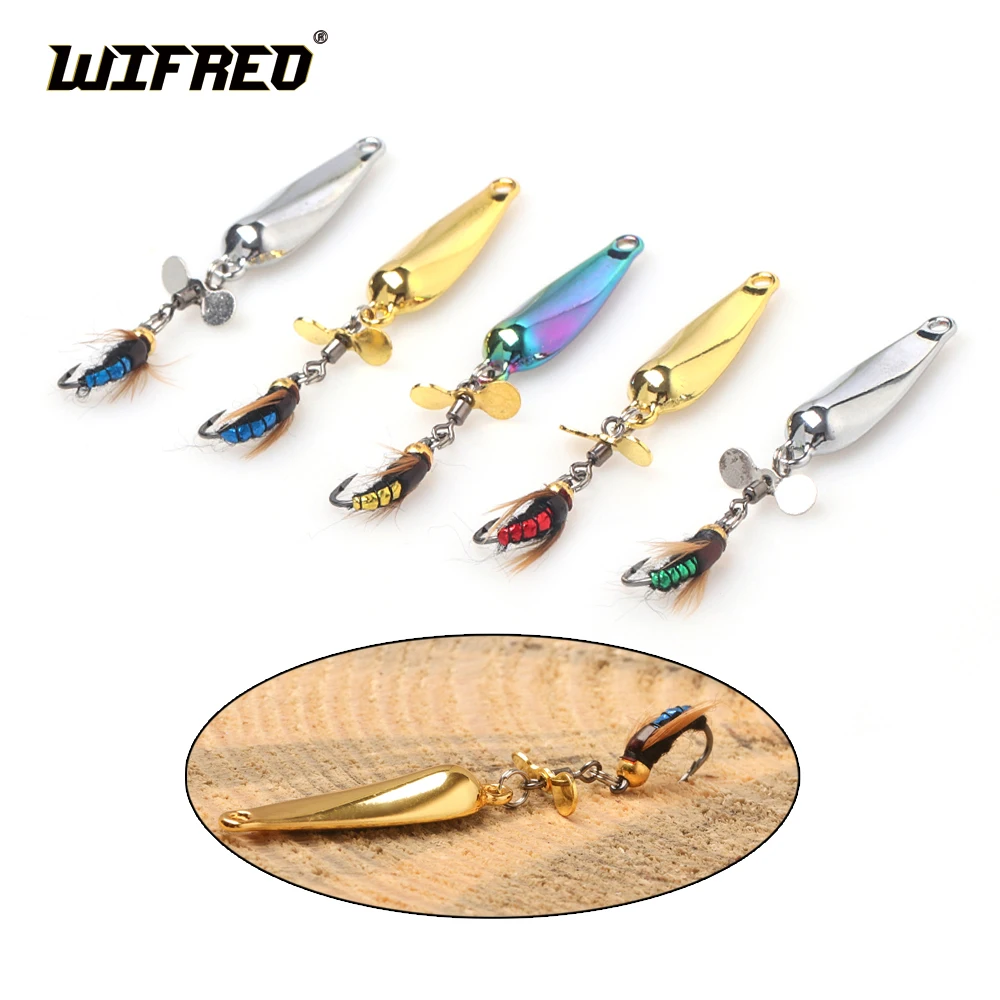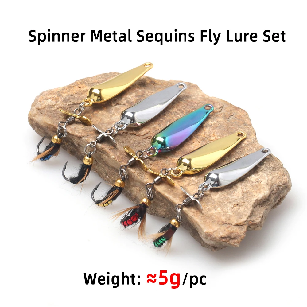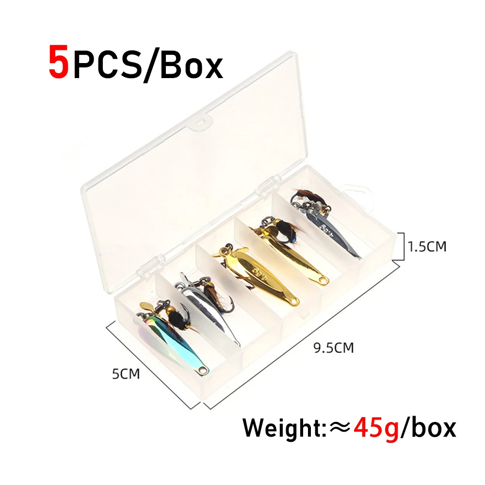 Wifreo 5 unids/caja Spinner Metal Lentejuelas Fly Lure 4,5G Cuchara ponderada Señuelo de pesca Juego listo
