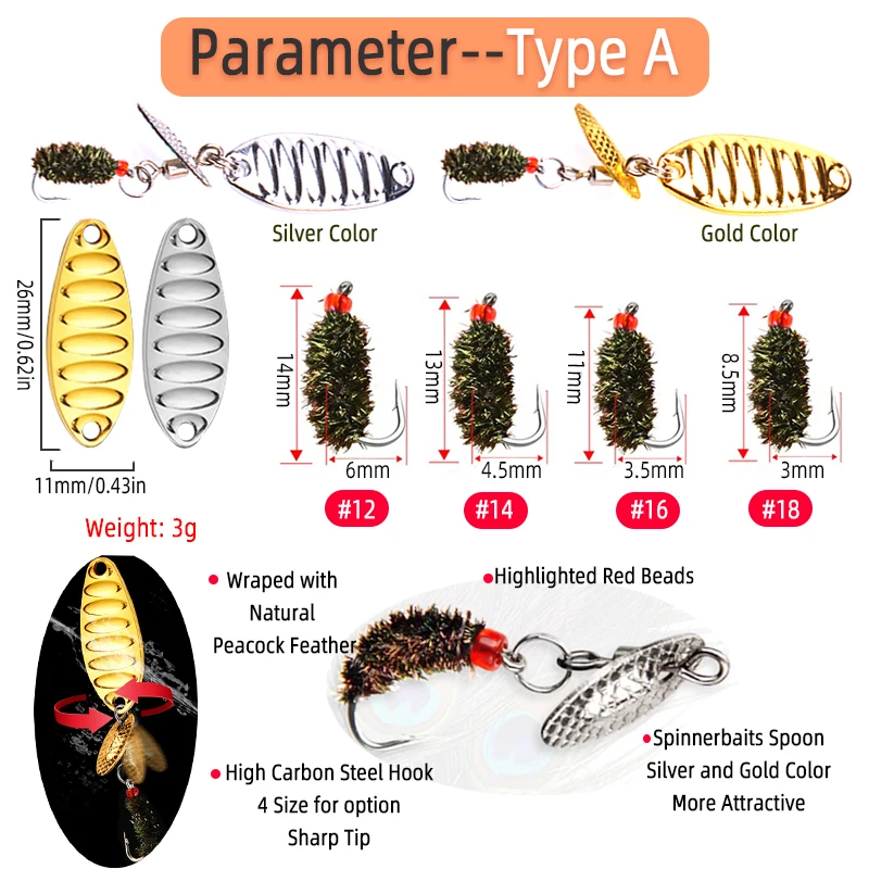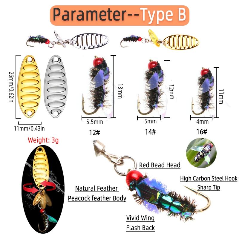 Wifreo-Anzuelos de Metal para Pesca, Anzuelo Giratorio, Cebo de Metal, Señuelo Giratorio, Insectos Artificiales, Moscas