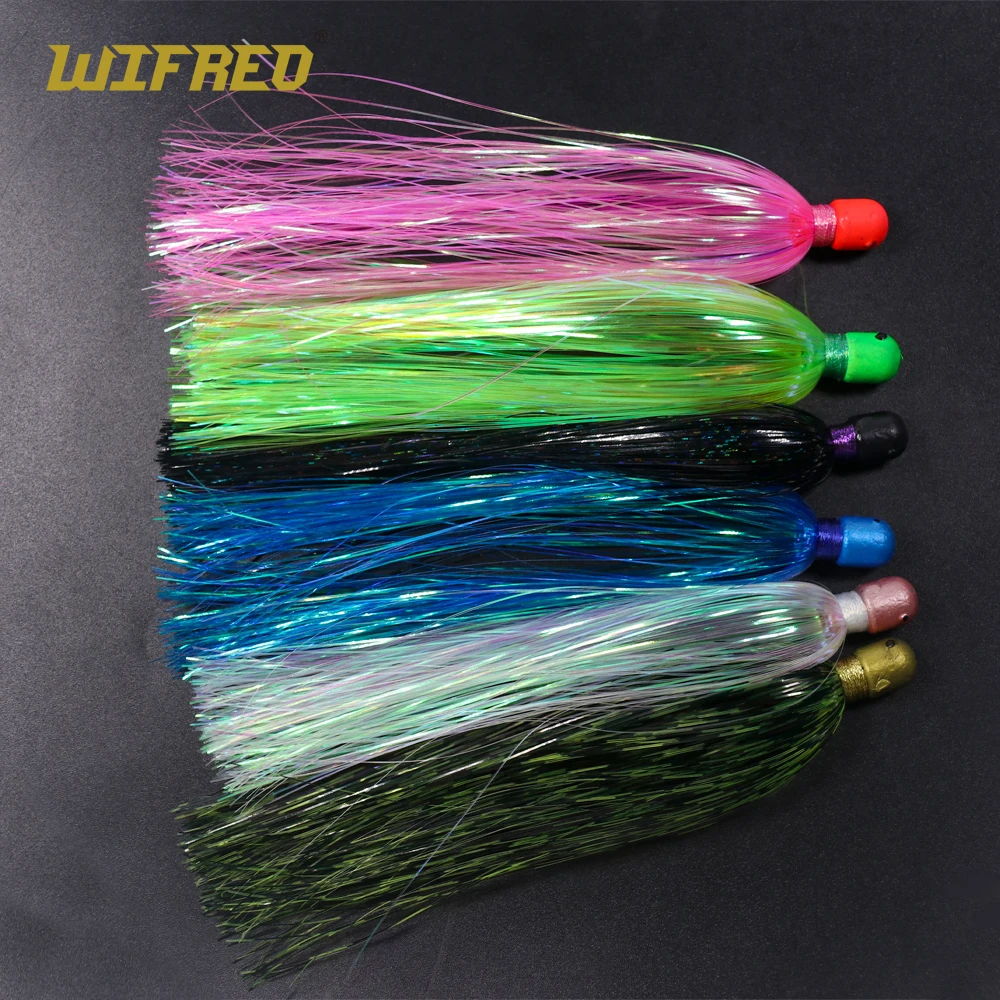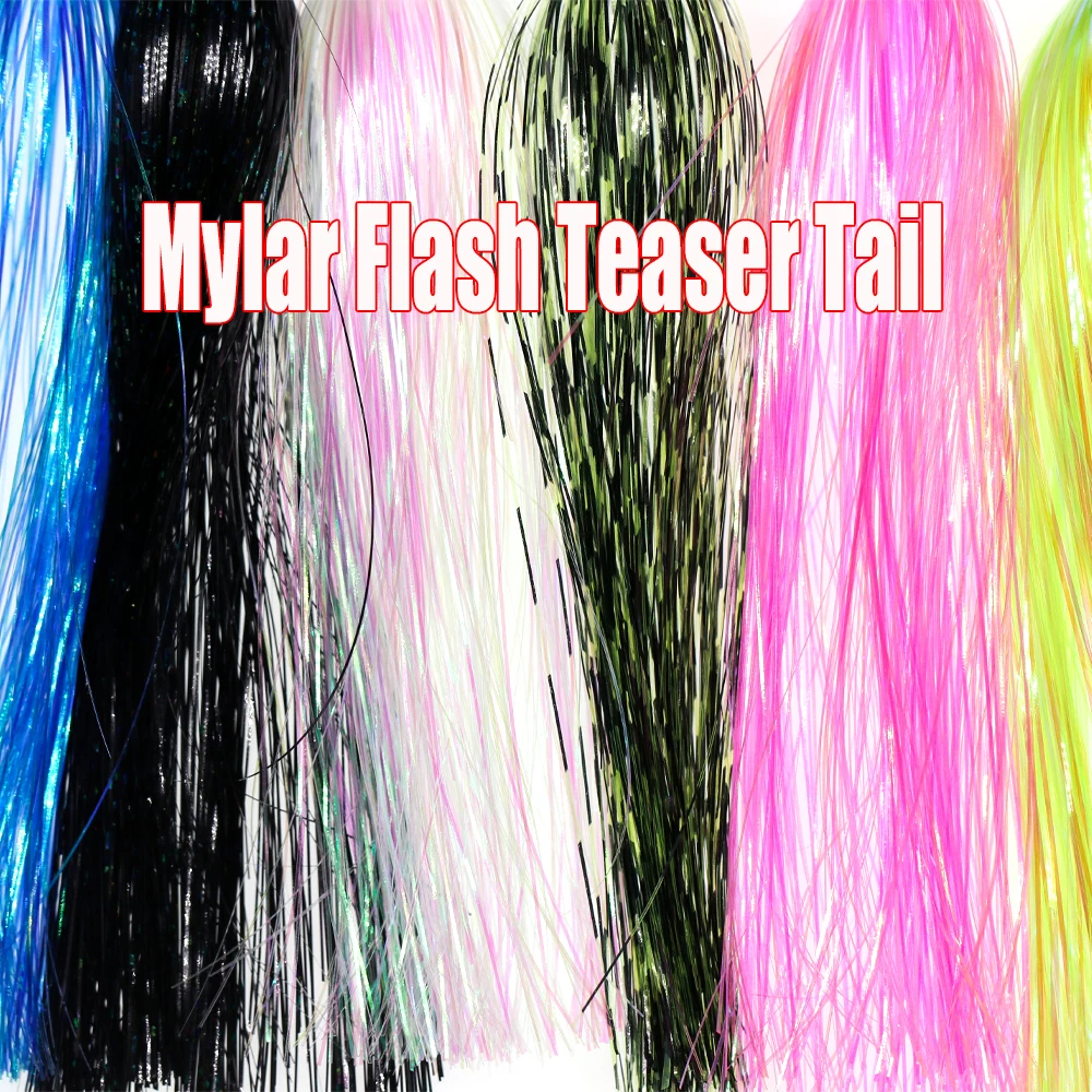 Wifreo 6-12 Uds Mylar Flash Teaser cola Jig cabeza señuelo de pesca cebo bala cabeza intermitente falda señuelo para accesorios de pesca marina