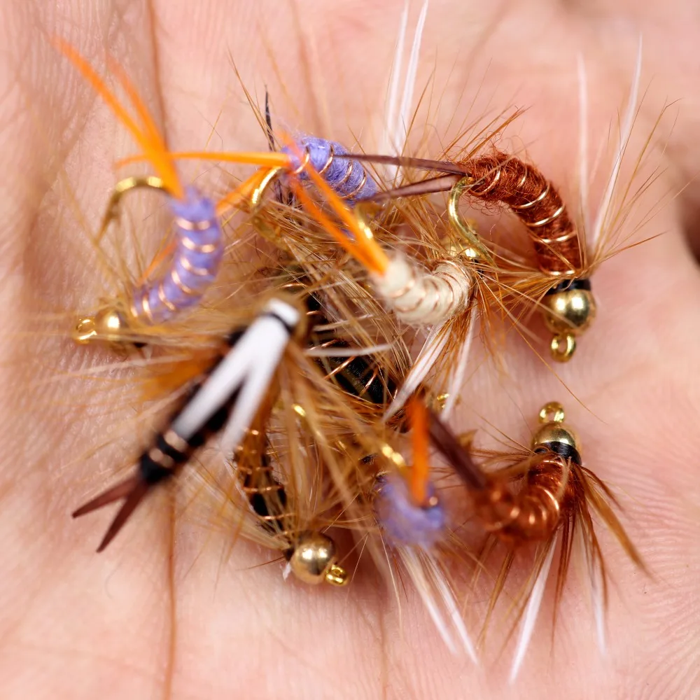 Wifreo 8PCS Size 12 14 Brass Bead Head Prince Nymph Stonefly Nymph Caddis Fly Black Purple Brown White Color Fishing Lure Bait