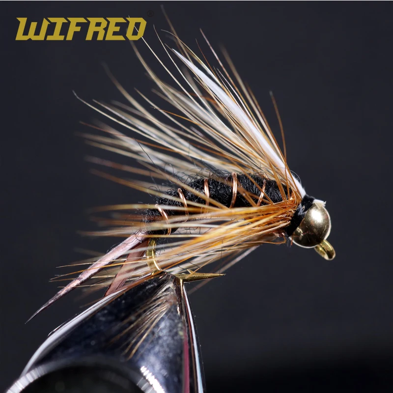 Wifreo 8PCS Size 12 14 Brass Bead Head Prince Nymph Stonefly Nymph Caddis Fly Black Purple Brown White Color Fishing Lure Bait