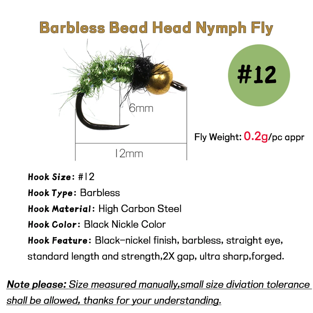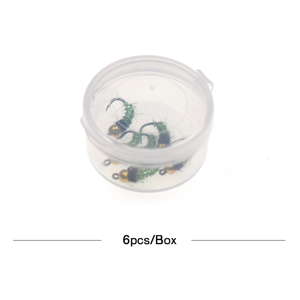 Cabeza de cuenta de latón WIFREO 6 piezas sin barra, hundimiento rápido, trucha con mosca Caddis Nymph, moscas de pesca #12, insectos artificiales, cebo de pesca