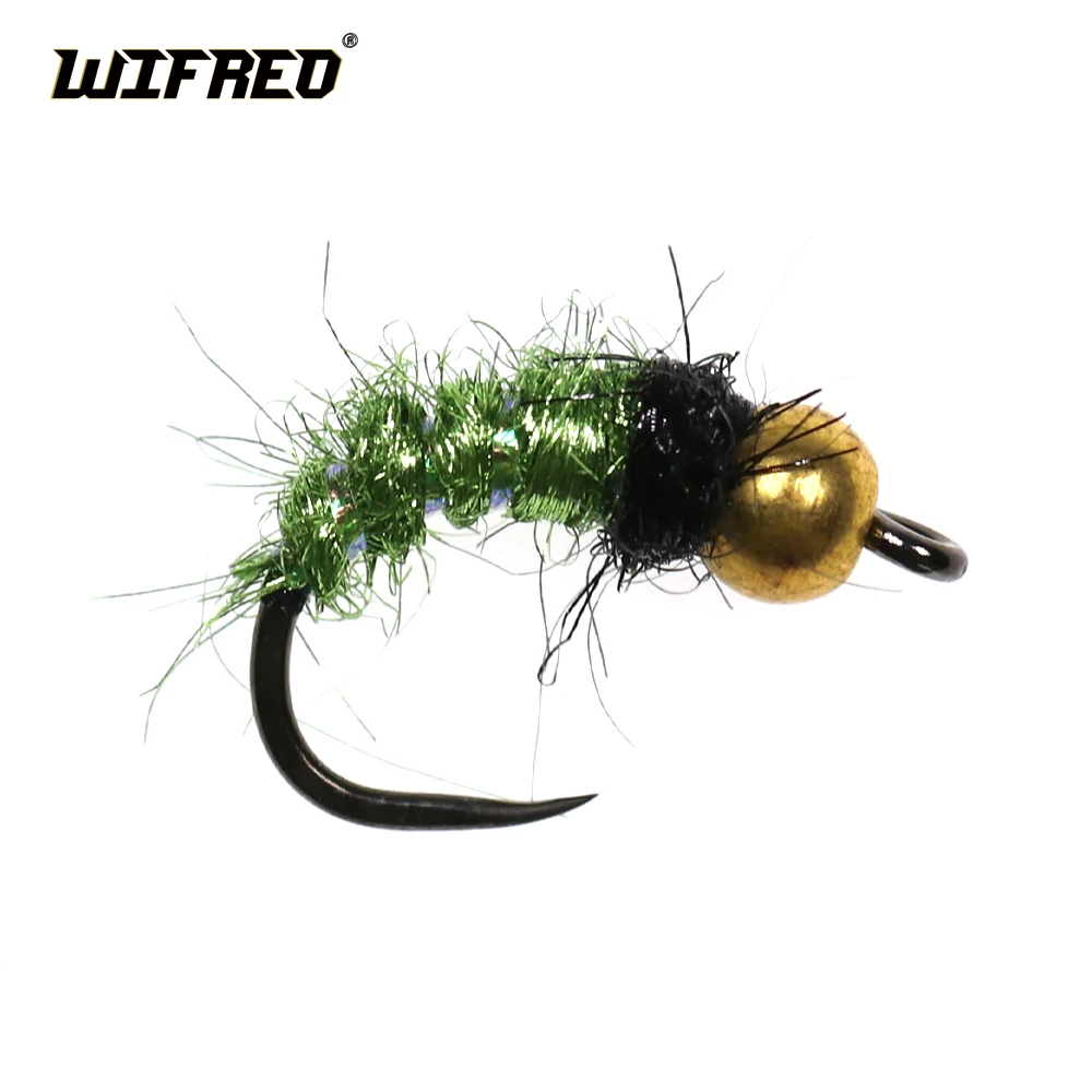 Cabeza de cuenta de latón WIFREO 6 piezas sin barra, hundimiento rápido, trucha con mosca Caddis Nymph, moscas de pesca #12, insectos artificiales, cebo de pesca