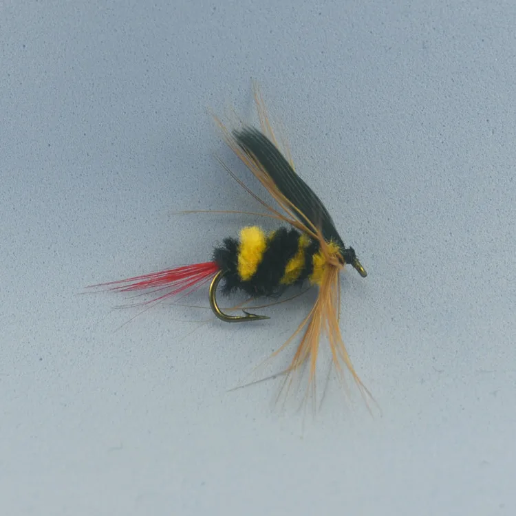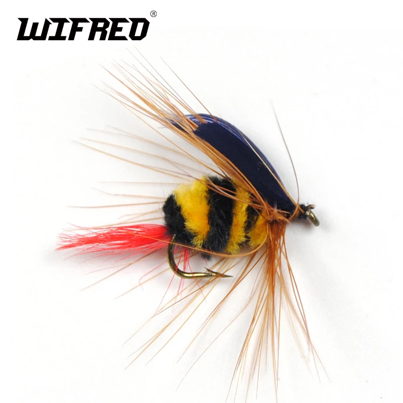 Wifreo-señuelo de pesca con mosca, 8 piezas, talla 10, abejorro negro y amarillo, lubina, trucha, insectos, moscas secas, ninfa, pesca