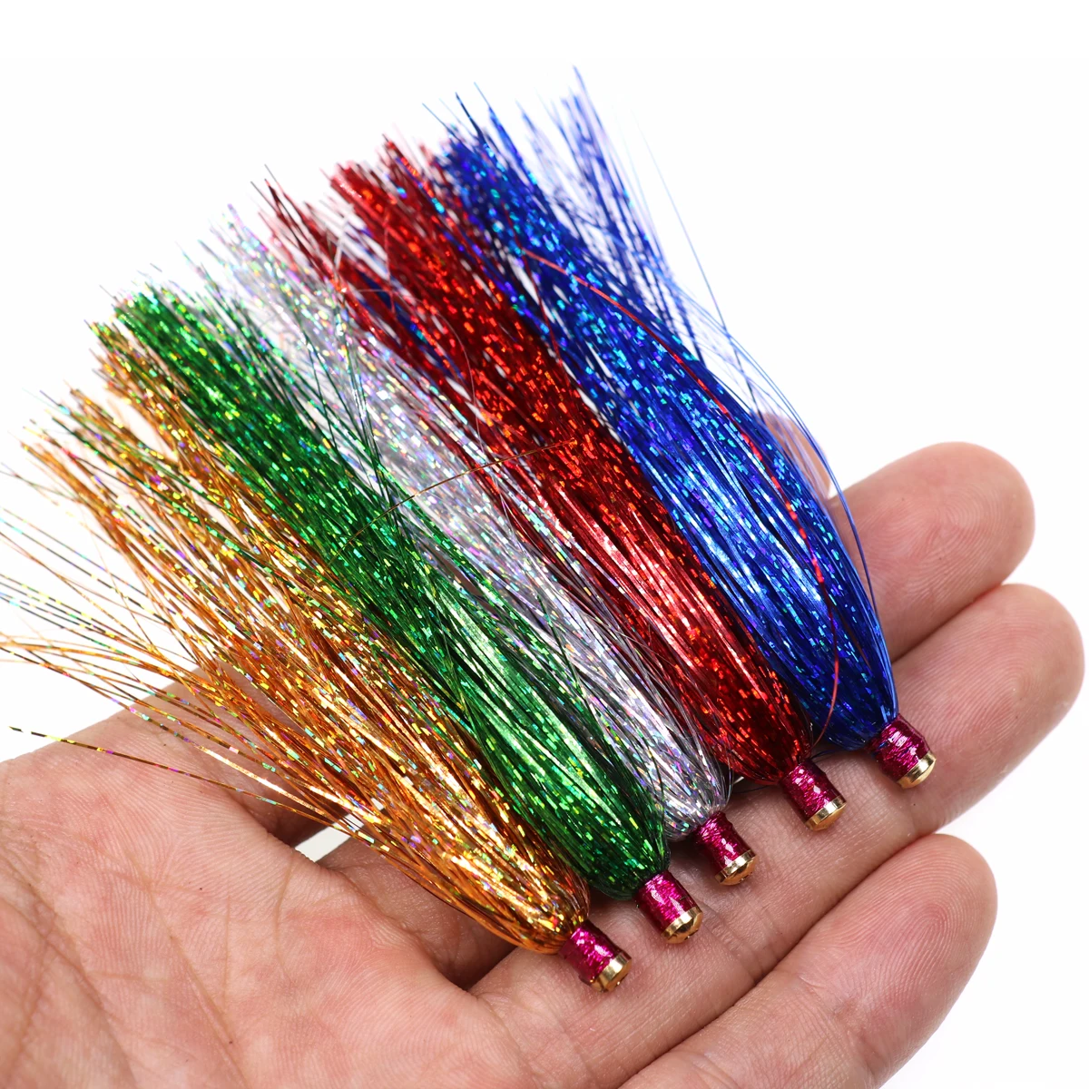 Wifreo 6 uds 3.3" oropel holográfico intermitente tubo deslizante Teaser mosca agua dulce chorro de agua salada mosca señuelos