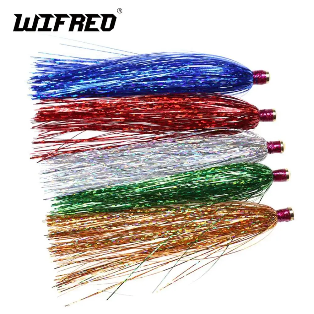 Wifreo 6 uds 3.3" oropel holográfico intermitente tubo deslizante Teaser mosca agua dulce chorro de agua salada mosca señuelos