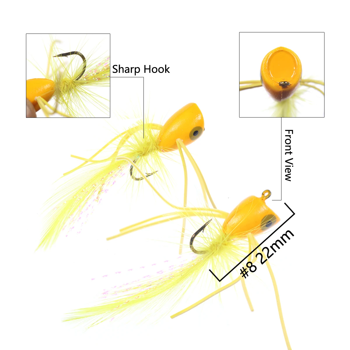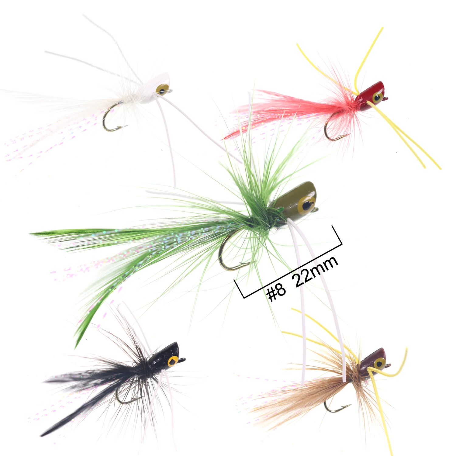 Juego de moscas Popper de pez con sartén superior de tamaño 8 de 10 piezas