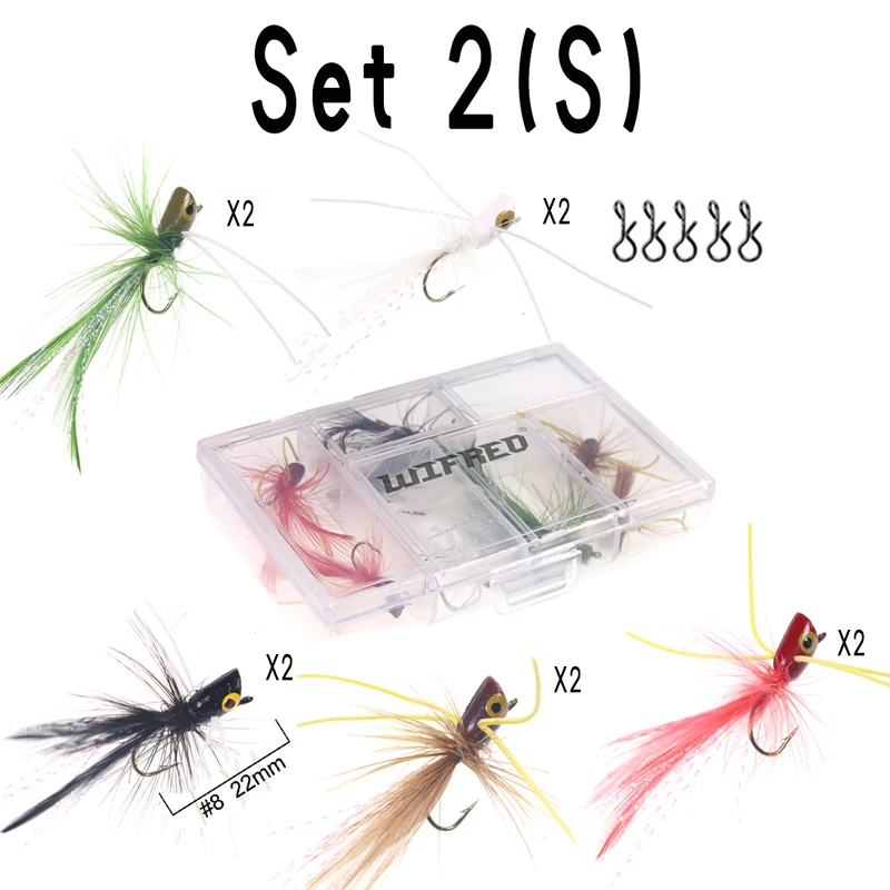 Set 1 Tamaño 8 Juego de moscas Topwater Pan Fish Popper