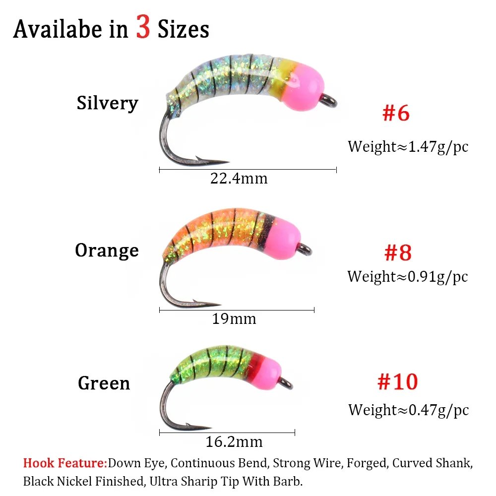 Cabeza de cuentas de latón Big Nymph Flies hundimiento rápido, atado con anzuelo de pesca de buena calidad. Trabajadores experimentados atadas a mano moscas de pesca. Especies objetivo: Trucha, BlueGill, lubina, crappie, perca, etc.