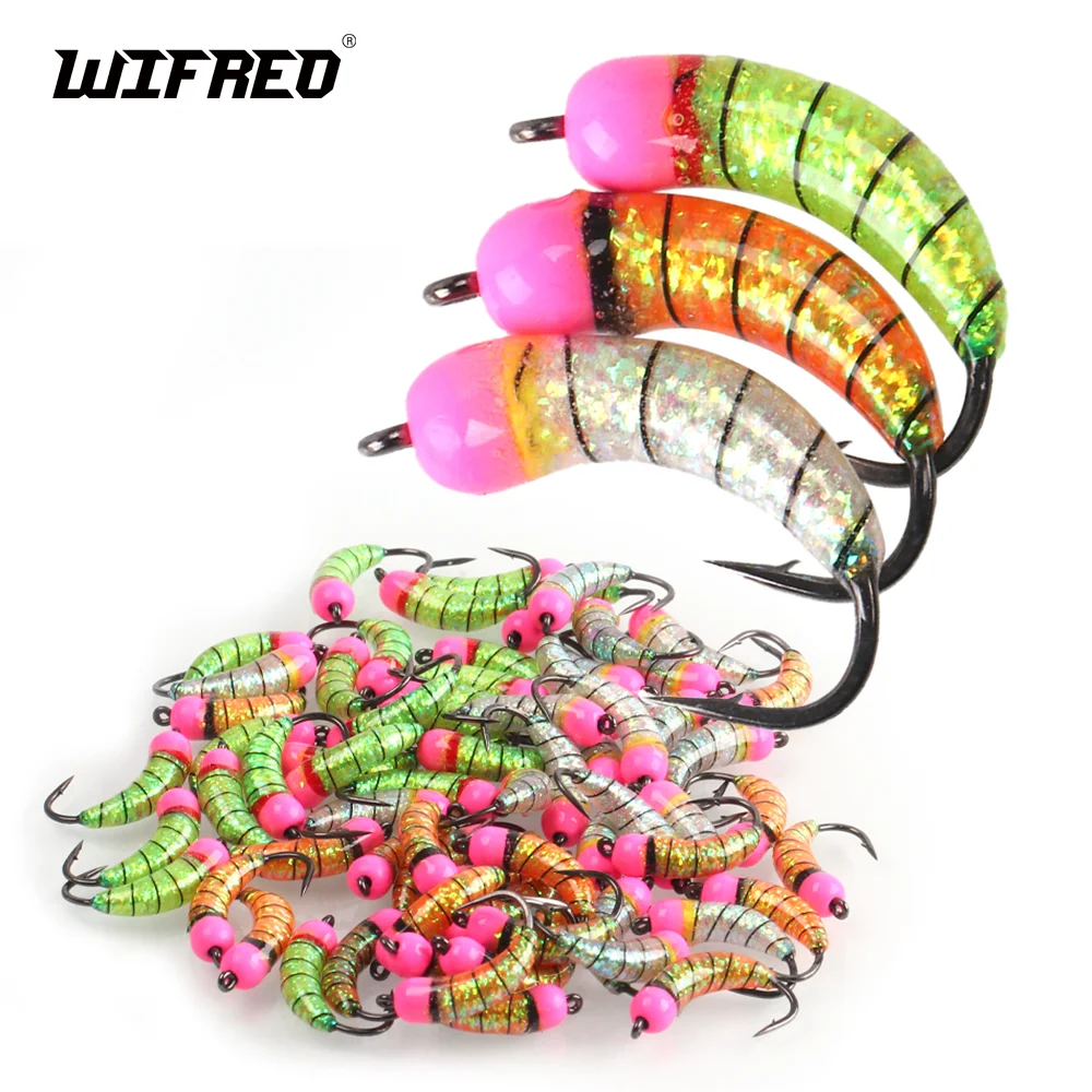Wifreo cabeza de cuentas de latón de 4 piezas epoxi Ninfa moscas mosca pesca moscas Scud Bug gusano mosca hielo pesca trucha Bluegill Señuelos de Pesca cebos