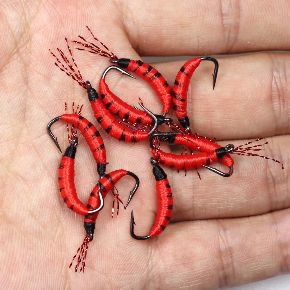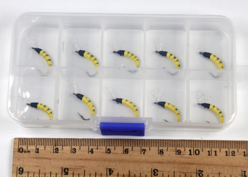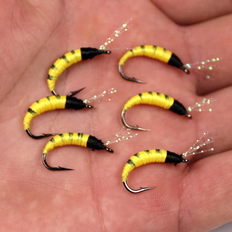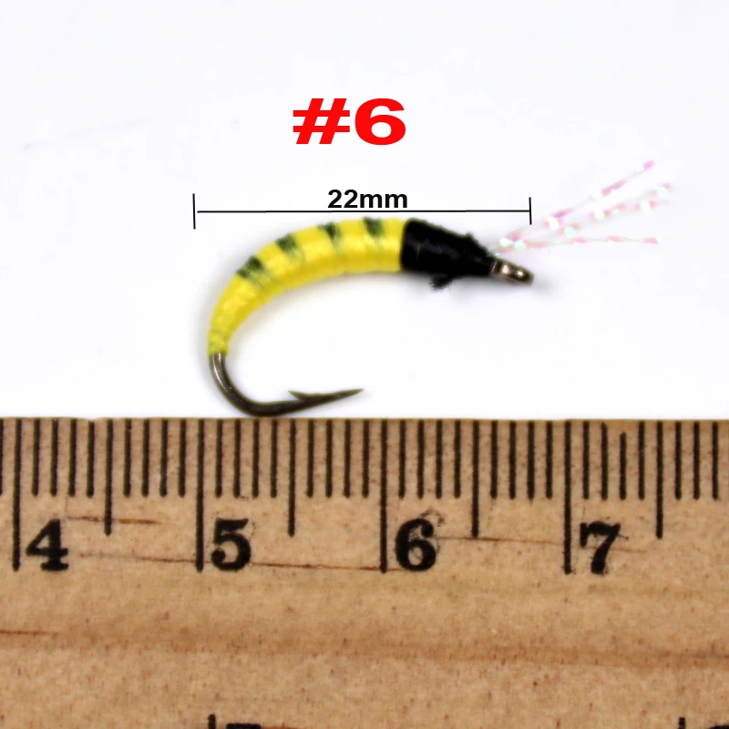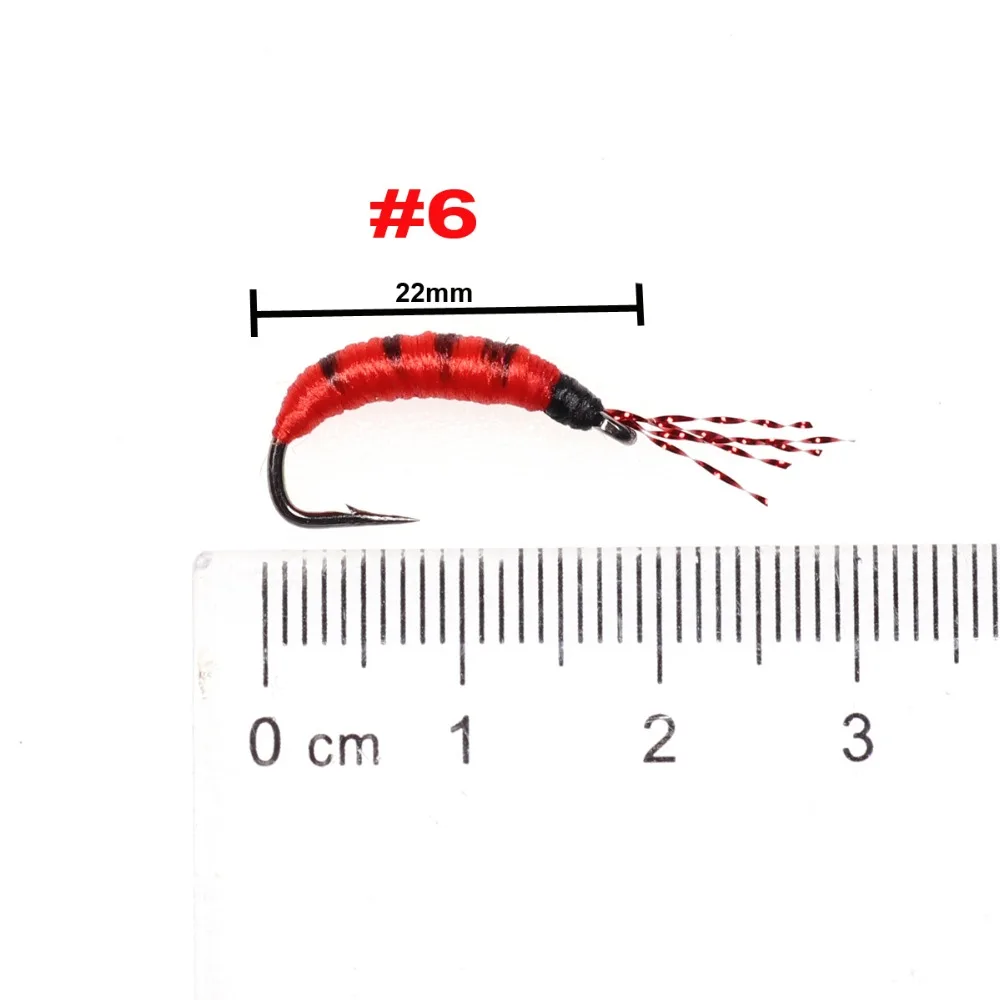 Tamaño Wifreo 10PCS#6 intermitentes rojo amarillo Pupa larva ninfa mosca para truta lubina Señuelos de pesca señuelos artificiales