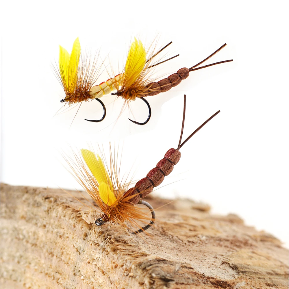 Wifreo-Ala de Plumas Realista Amarilla, Cebo de Señuelo de Trucha, Ninfa, Moscas Secas, Río Rocoso, Lubina, Pesca con Moscas, Cebo, 6 piezas