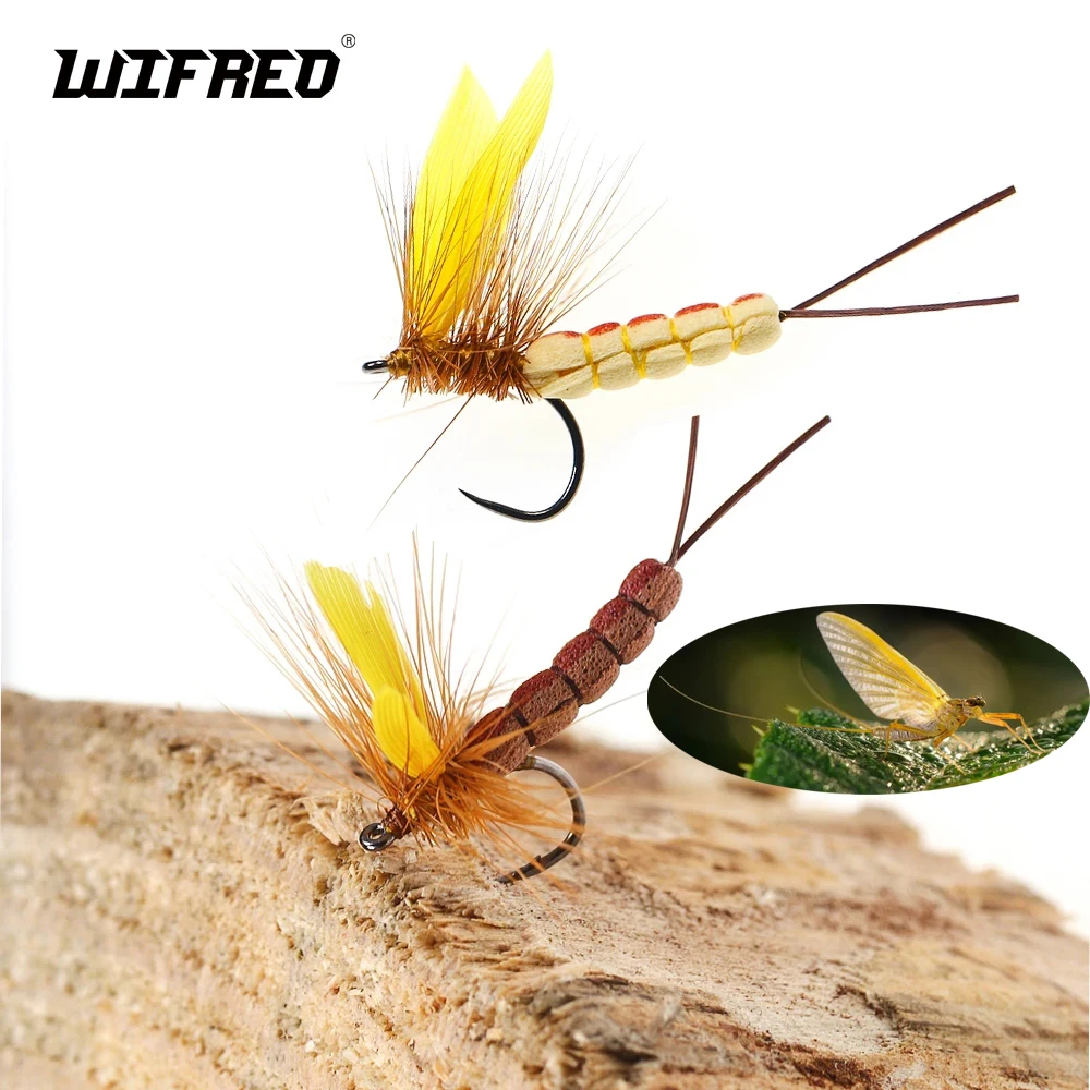 Wifreo-Ala de Plumas Realista Amarilla, Cebo de Señuelo de Trucha, Ninfa, Moscas Secas, Río Rocoso, Lubina, Pesca con Moscas, Cebo, 6 piezas