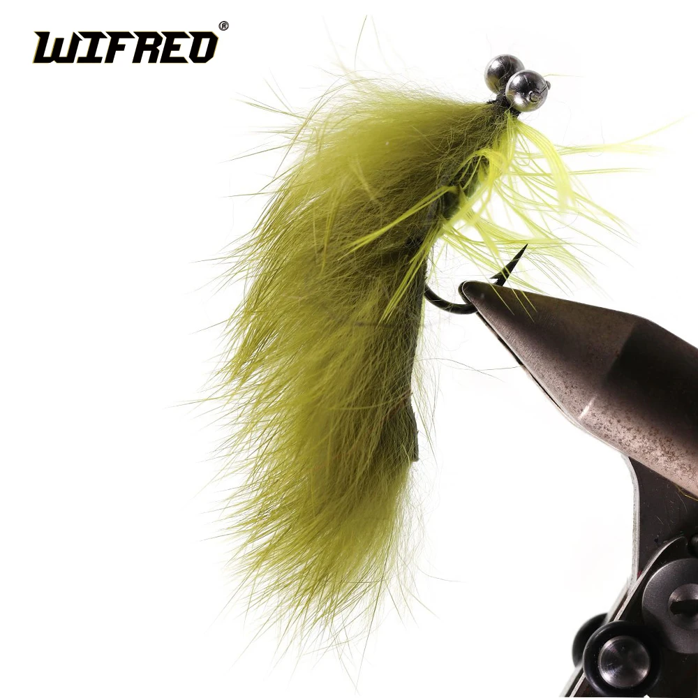 Wifreo 6PCS 6 # Verde/Oliva Blanco Negro Dumb Bell Eye Zonker Pesca con mosca Serpentinas Pesca Moscas Señuelos Cebos