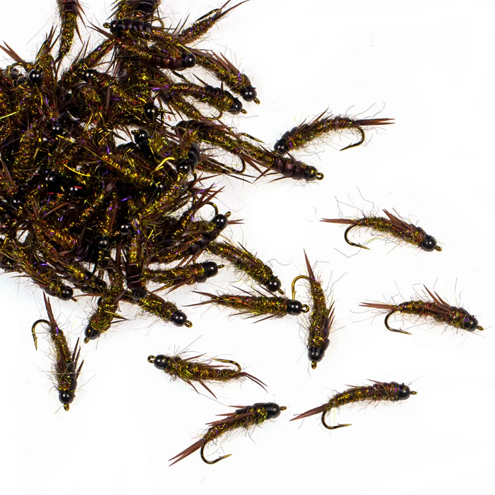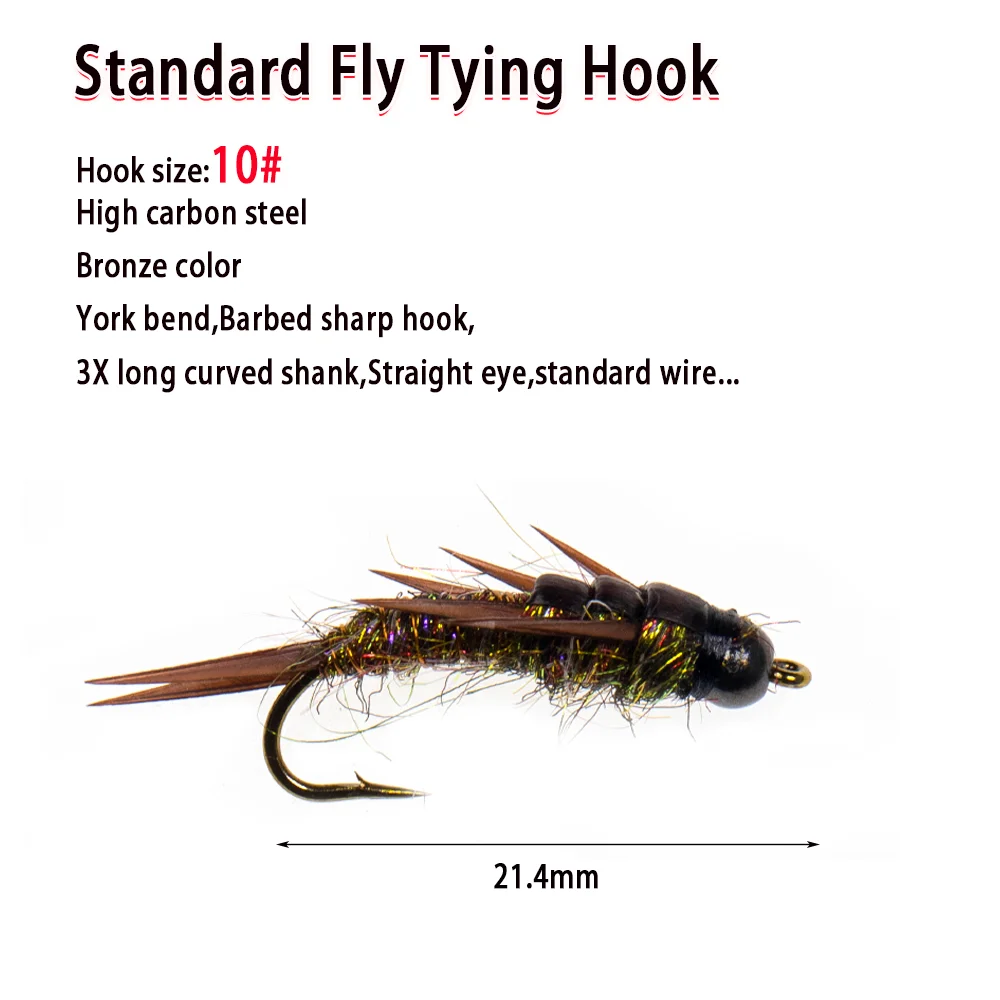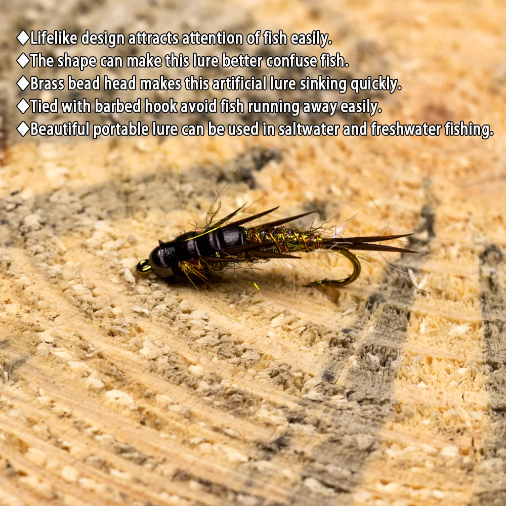 Wifreo 8 piezas 10# Pesca con mosca, cuentas de latón, ninfa de mosca de piedra, anzuelo de púas de hundimiento rápido, ninfas húmedas, trucha, cabeza de acero, señuelos de mosca para pesca, cebos