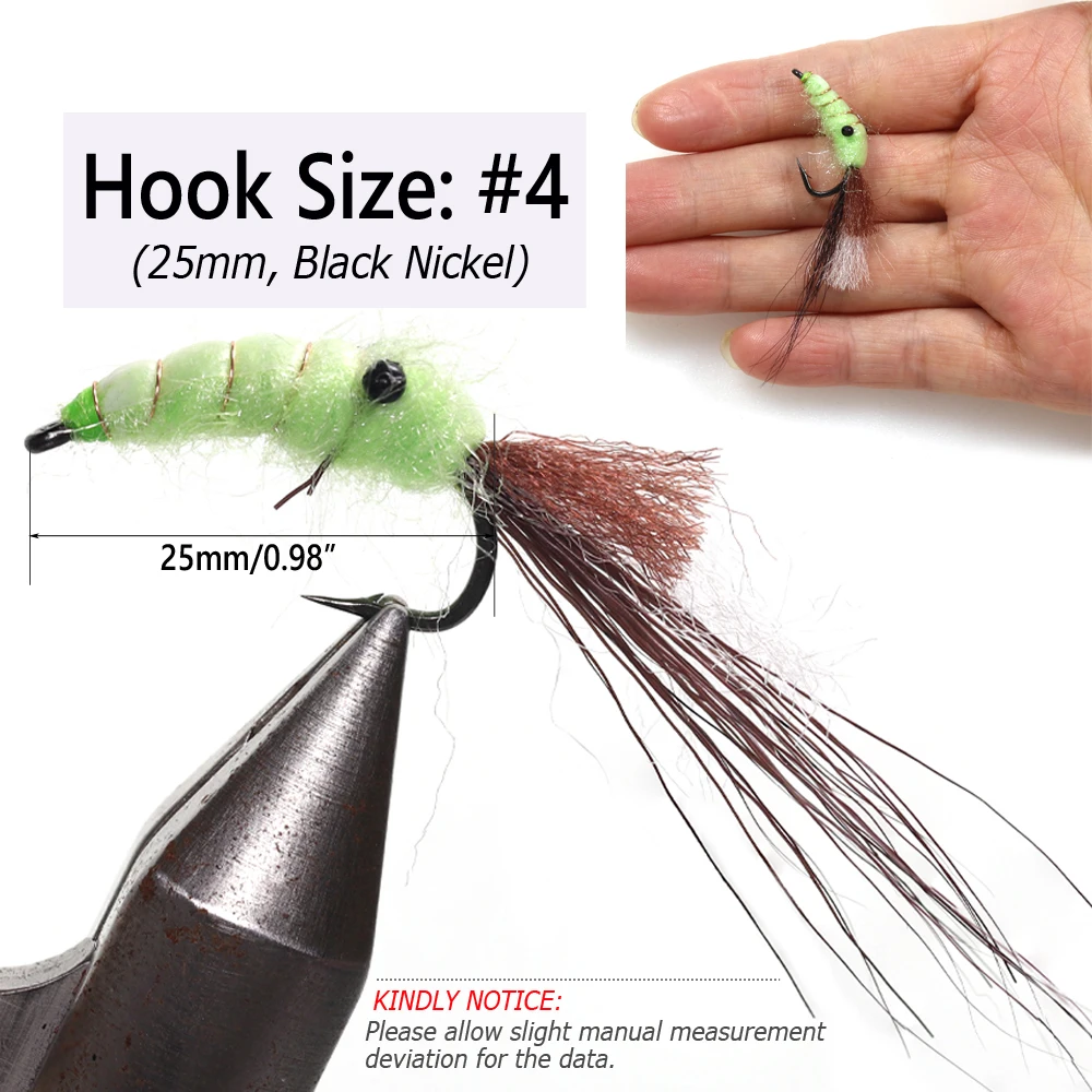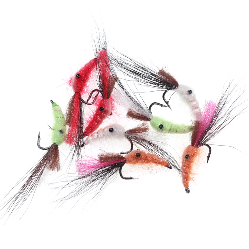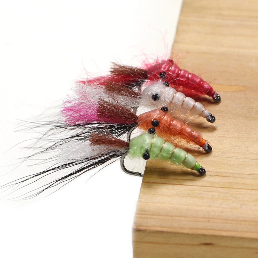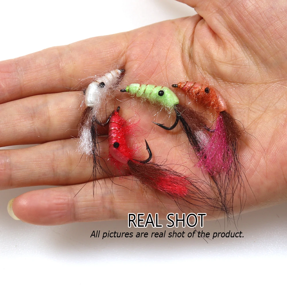 Wifreo 6 piezas n. ° 4 pequeño Camarón mosca de la sal lubina trucha de acero salmón pesca moscas Nymph Fly para agua dulce de agua salada cebo señuelos