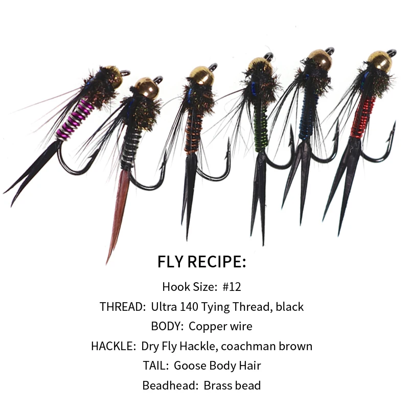 WIFREO-Cabeza de perla para pesca con mosca, 6 unidades, cobre, John, moscas de cobre, trucha seca, ninfa, trucha, Señuelos de Pesca