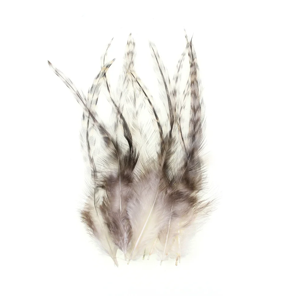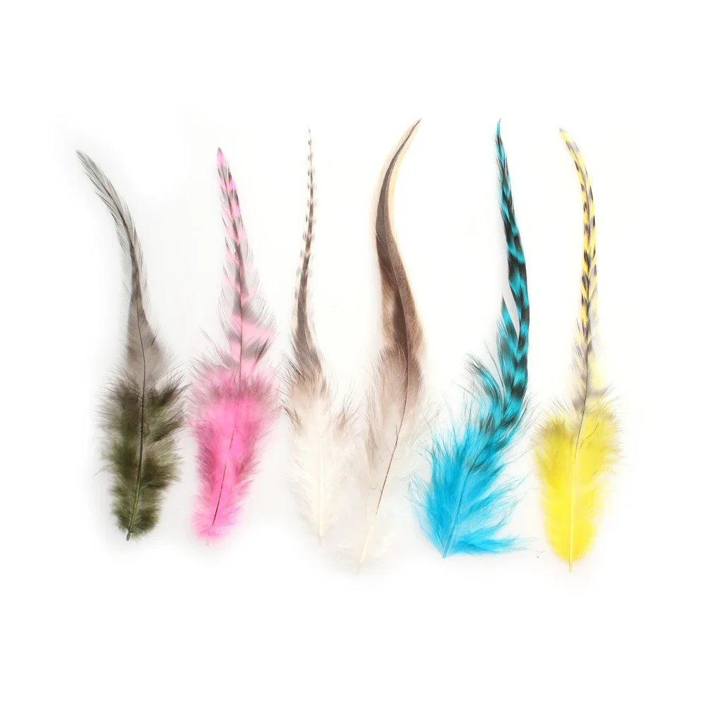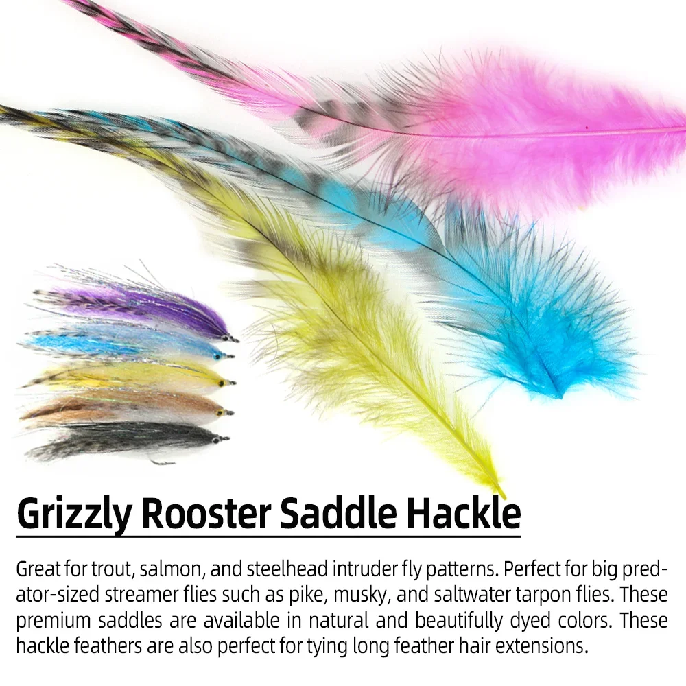 Ideal para trucha, salmón y patrones de mosca intrusa. Perfecto para moscas serpentinas grandes del tamaño de depredadores como el lucio, el almizcle y las moscas de sábalo de agua salada. Estas monturas premium están disponibles en colores naturales y bellamente teñidos. Estas plumas de hackeo también son perfectas para atar extensiones de cabello de plumas largas.