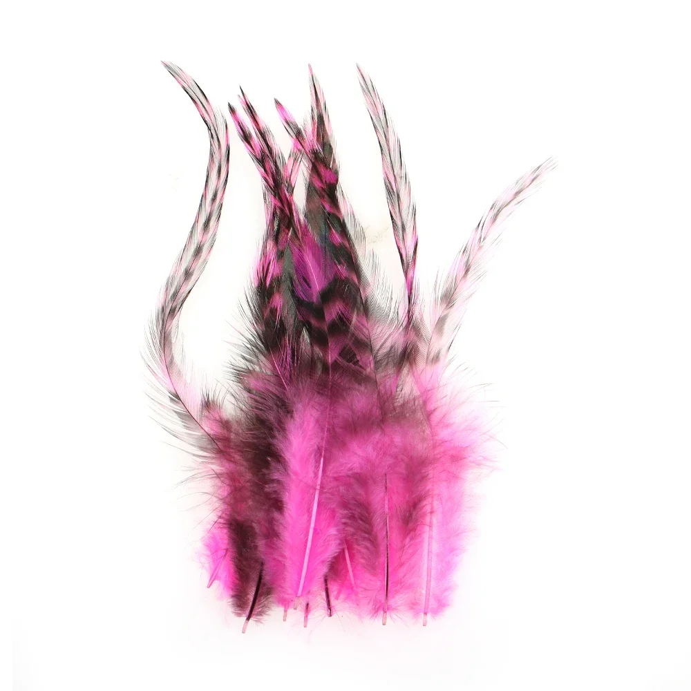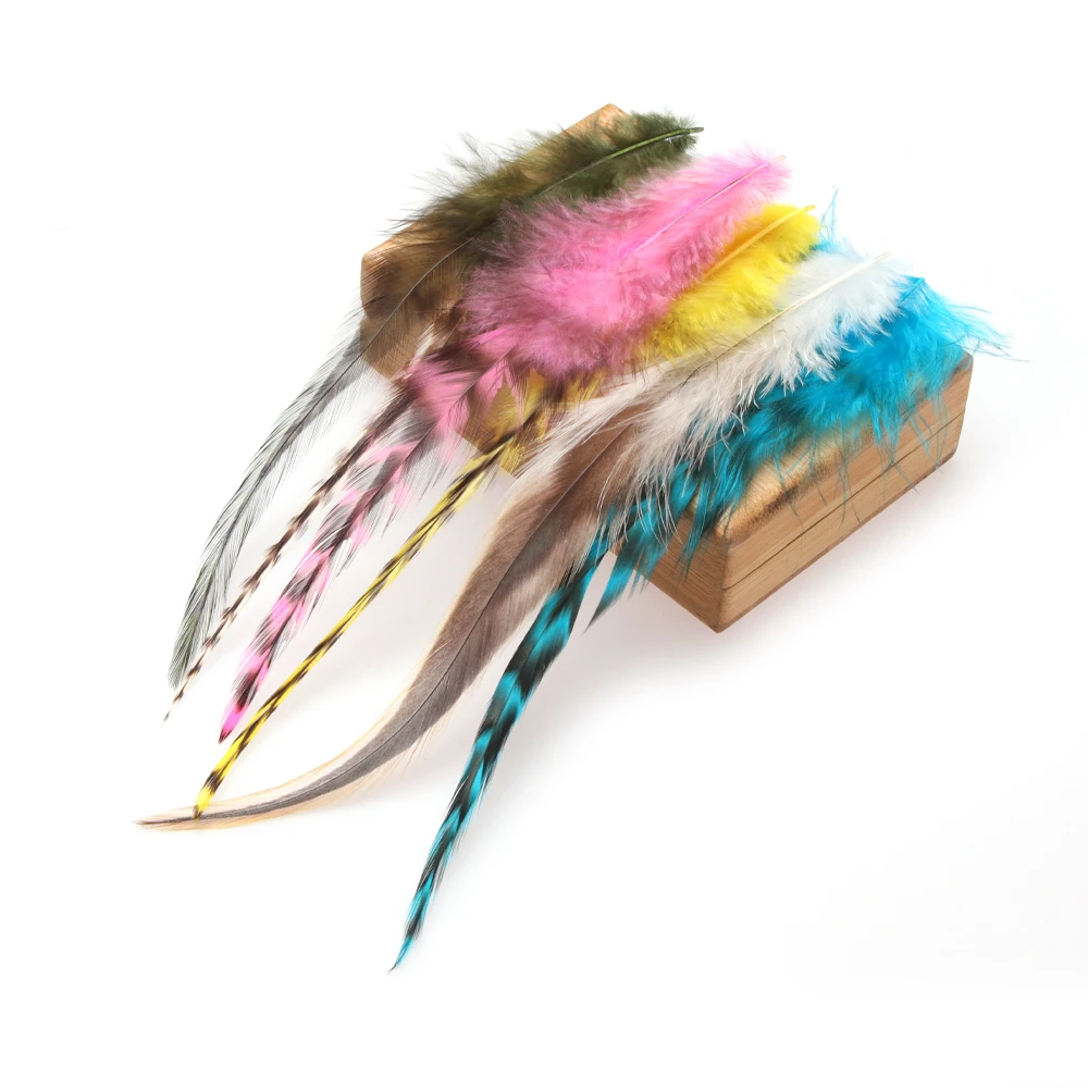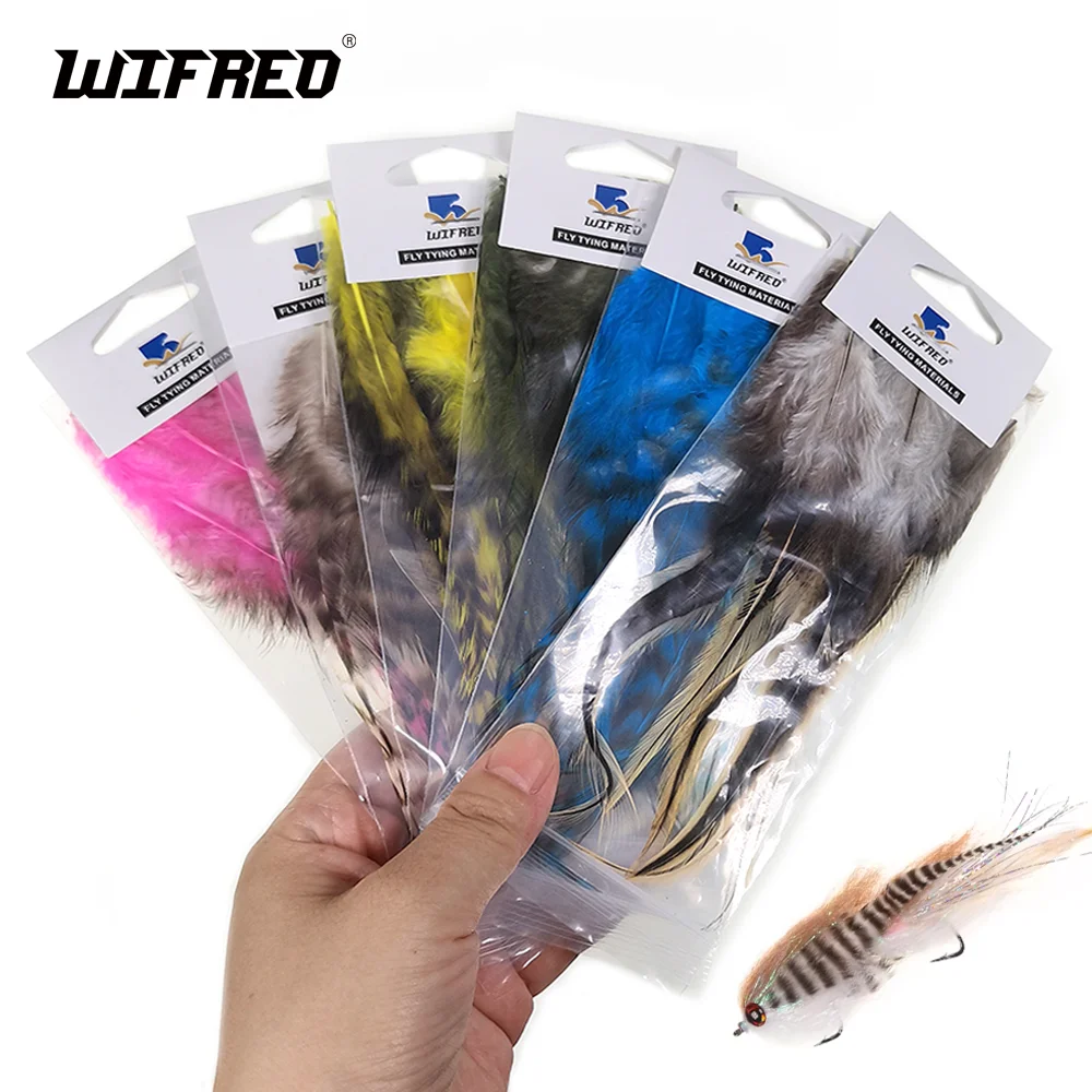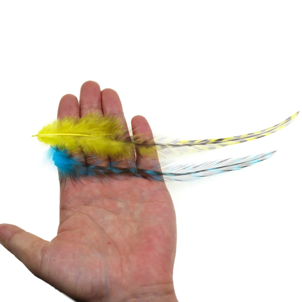 Ideal para trucha, salmón y patrones de mosca intrusa. Perfecto para moscas serpentinas grandes del tamaño de depredadores como el lucio, el almizcle y las moscas de sábalo de agua salada. Estas monturas premium están disponibles en colores naturales y bellamente teñidos. Estas plumas de hackeo también son perfectas para atar extensiones de cabello de plumas largas.