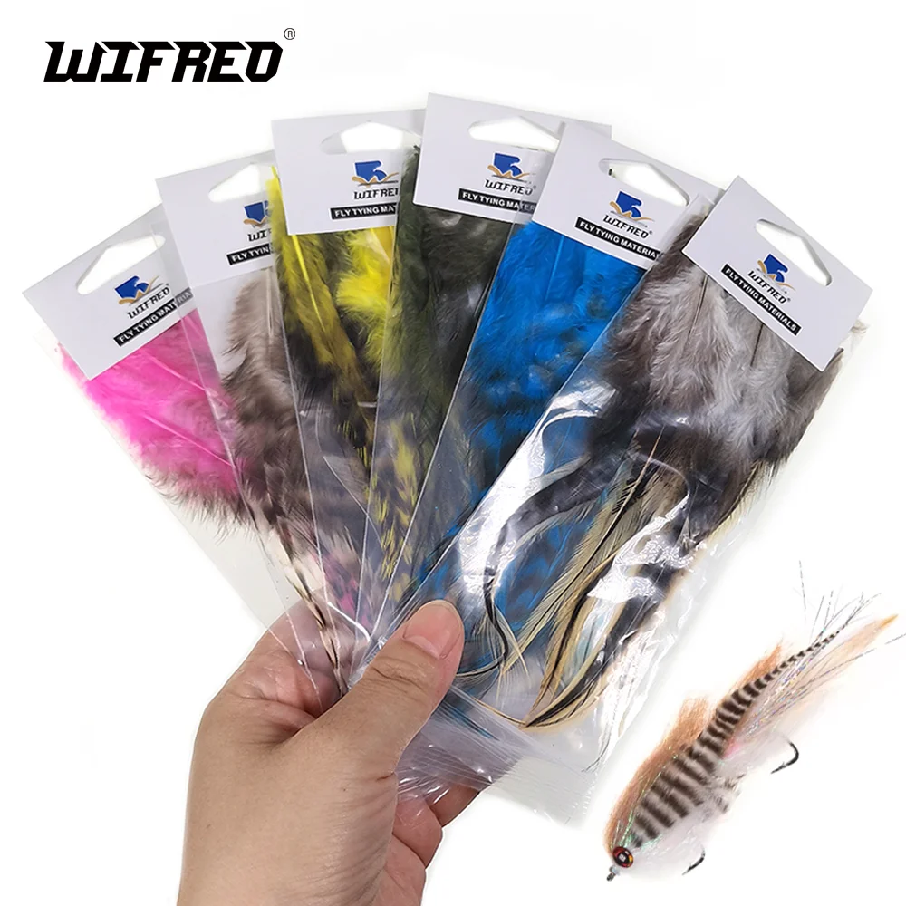 Ideal para trucha, salmón y patrones de mosca intrusa. Perfecto para moscas serpentinas grandes del tamaño de depredadores como el lucio, el almizcle y las moscas de sábalo de agua salada. Estas monturas premium están disponibles en colores naturales y bellamente teñidos. Estas plumas de hackeo también son perfectas para atar extensiones de cabello de plumas largas.