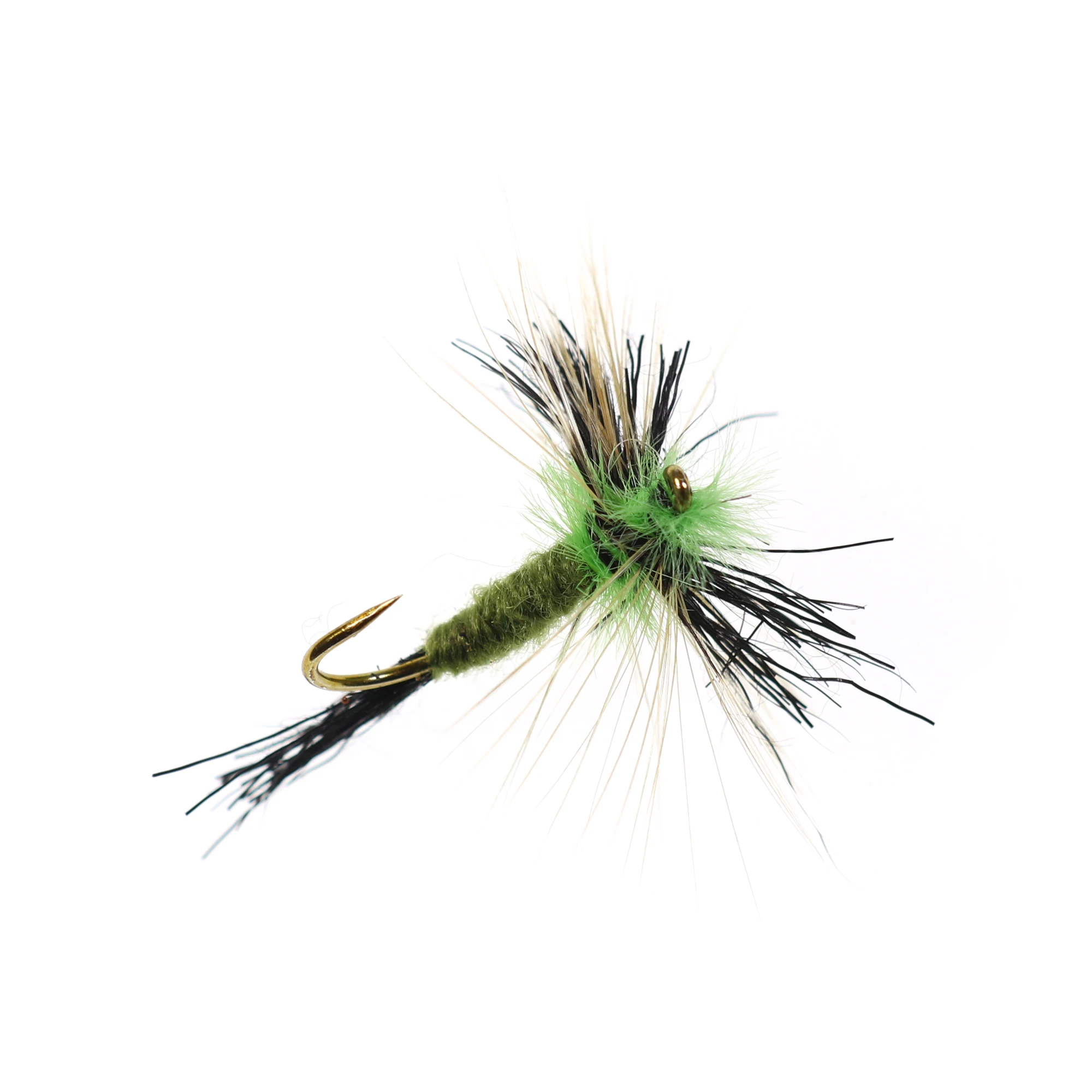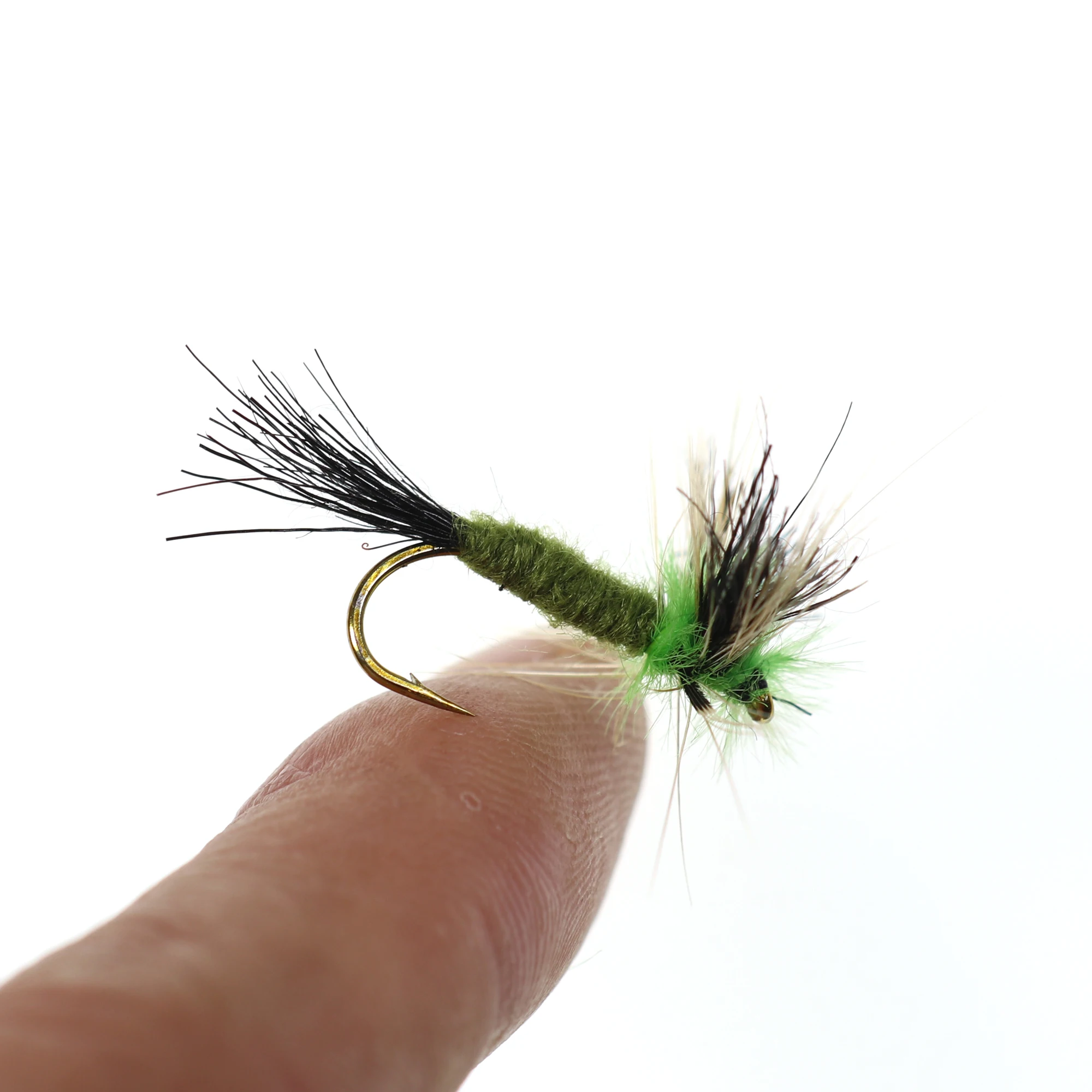 La trucha ve las alas salpicadas, colocándose plana sobre el agua otras veces, el spinner parece este Spinner Drake verde, con sus alas pegadas juntas. Perchas y tamizadas, especialmente por la noche o por la mañana.