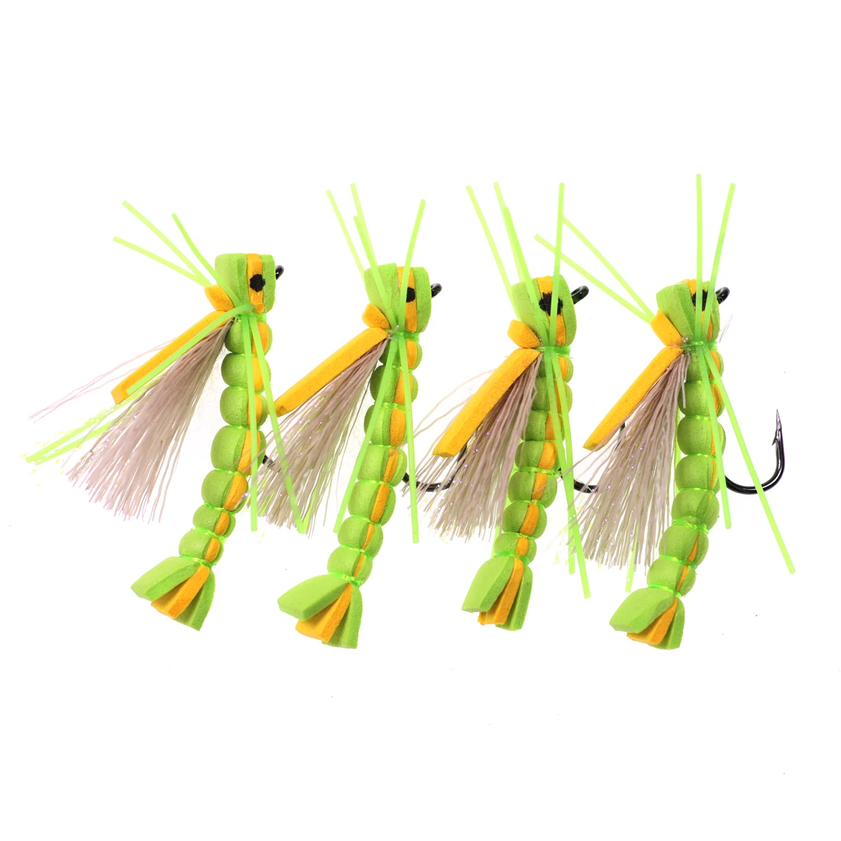 Wifreo 4 Uds tolva de espuma flotante verde mosca seca arco iris trucha lubina percha mosca pesca moscas señuelos#4