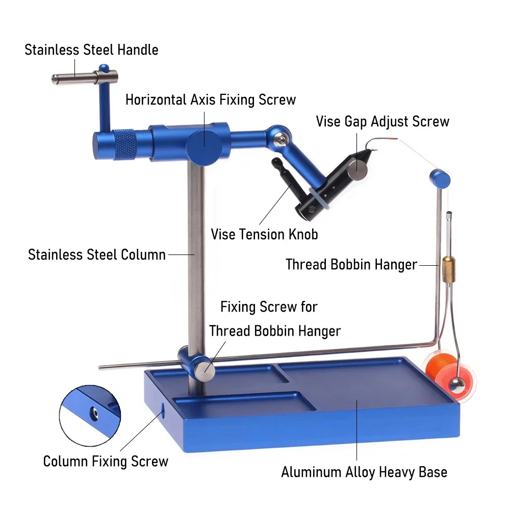 Wifreo, tornillo de Banco azul de rotación de 360 ° con mordazas de acero endurecido, Base de alta resistencia, atado de pesca con mosca, tornillo de banco, anzuelo de asistencia, herramientas para hacer señuelos