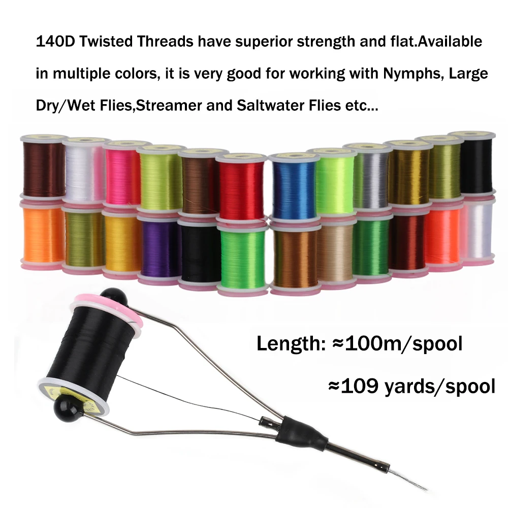 Los hilos trenzados 140D tienen una resistencia superior y son planos. Disponible en los 21 colores más populares. Es muy bueno para trabajar con ninfas, moscas grandes secas/húmedas, serpentina y moscas pequeñas de agua salada, etc. Al usarlos, es extremadamente importante asegurarse de quitar cada soporte del corte en el carrete antes de enhebrar la bobina.