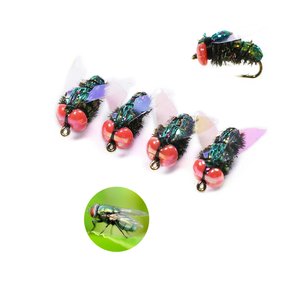 WIifreo 8pcs Realistic Bottle Flies Fly Fishing Flies Artificial Bionic Flies Insect Lure for Bass Fishing Trout Lure Carp Bait pesca