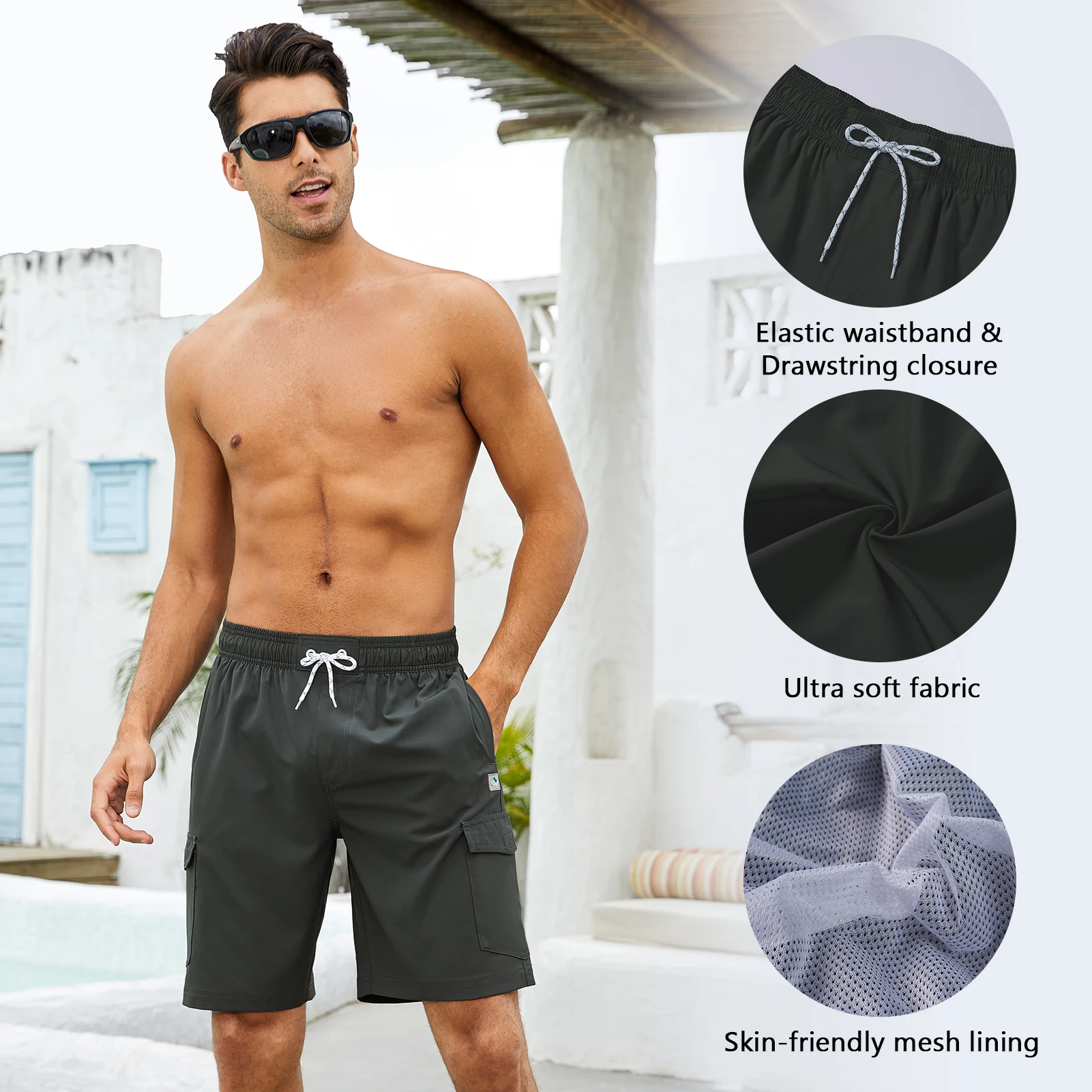 Cintura elástica con cordones ajustables para garantizar que los pantalones cortos nunca se caigan ni se deslicen; El forro de malla suave proporciona soporte y ayuda a prevenir la fricción de la piel en el agua