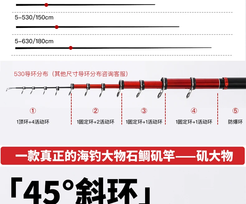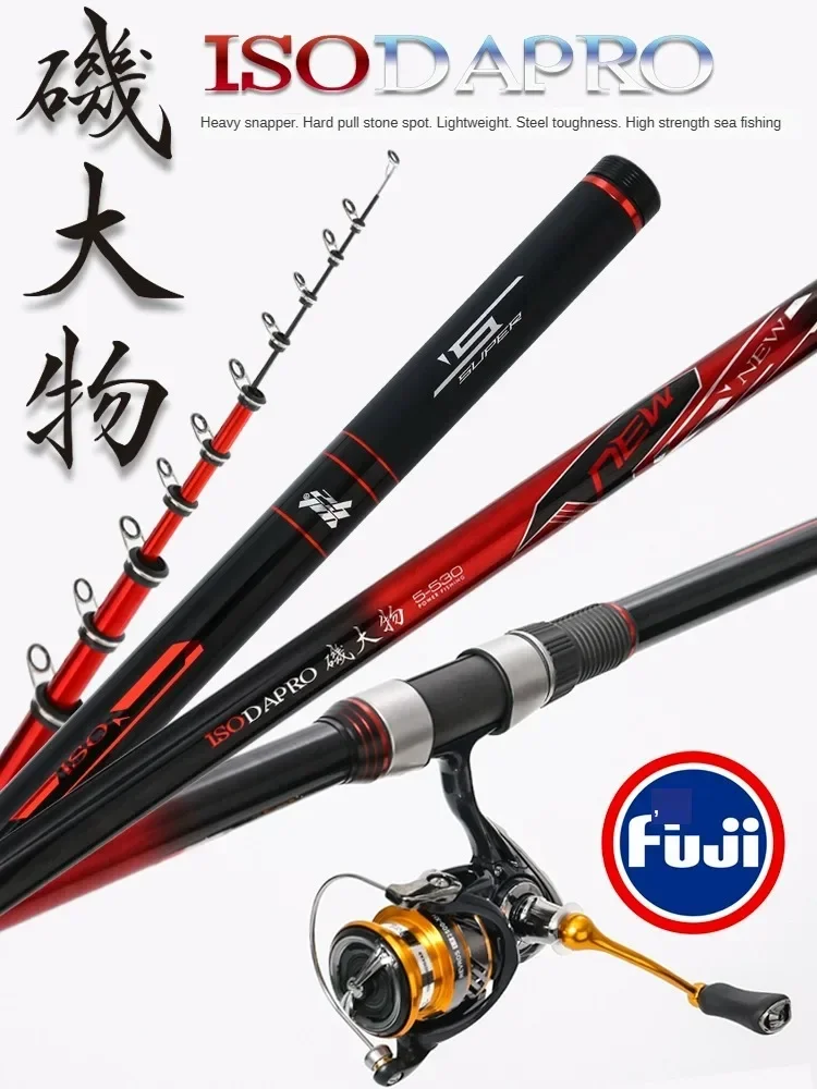 WLGZ Fuji parte caña de pescar ultraligera de alto carbono en roca 4 # 5 # 450 530 630 Poste giratorio telescópico de agua salada de fundición larga para carpa