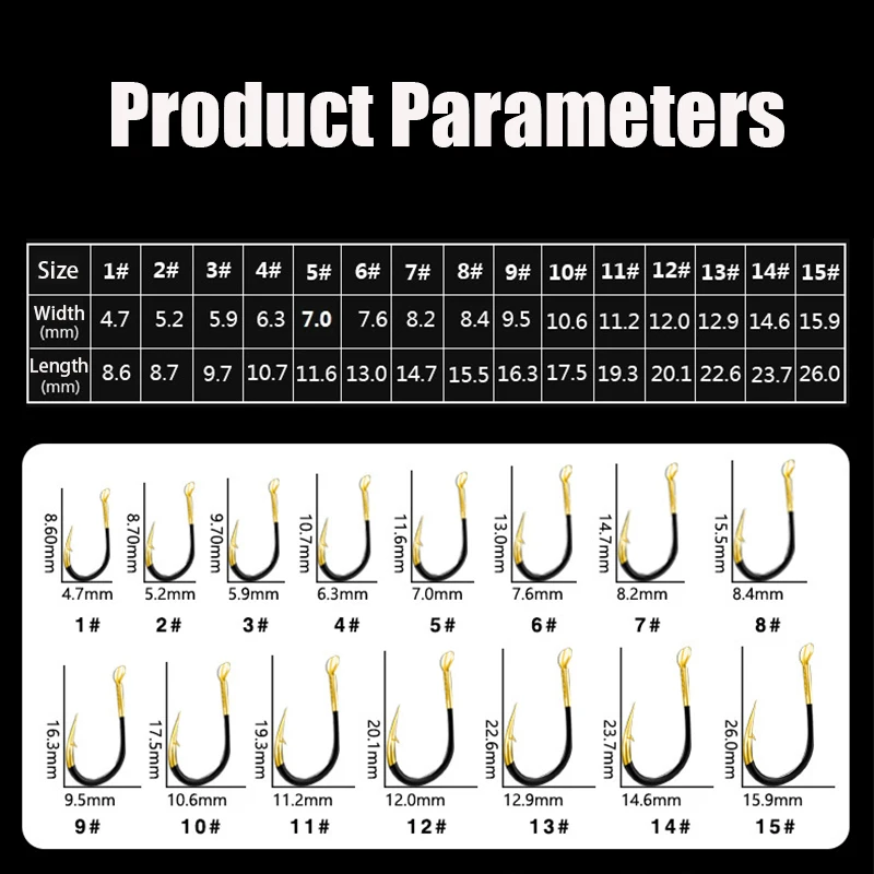 Tamaño del gancho: 1#,2#,3#,4#,5#,6#,7#,8#,9#,10#,11#,12#,13#