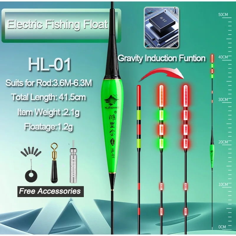 WLPFISHING-flotadores de pesca con Sensor de gravedad eléctrico, antena inteligente IC para picaduras de pescado, cambio de Color, LED luminoso, Bobbers CR425, 1 ud.