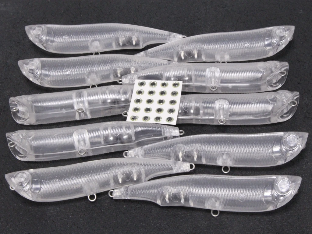 Tamaño de los ojos: 6mm(no viene con ojos de pez)Tipo: Cuerpo de señuelo en blanco (no viene con anzuelos de pesca ni anillos divididos).