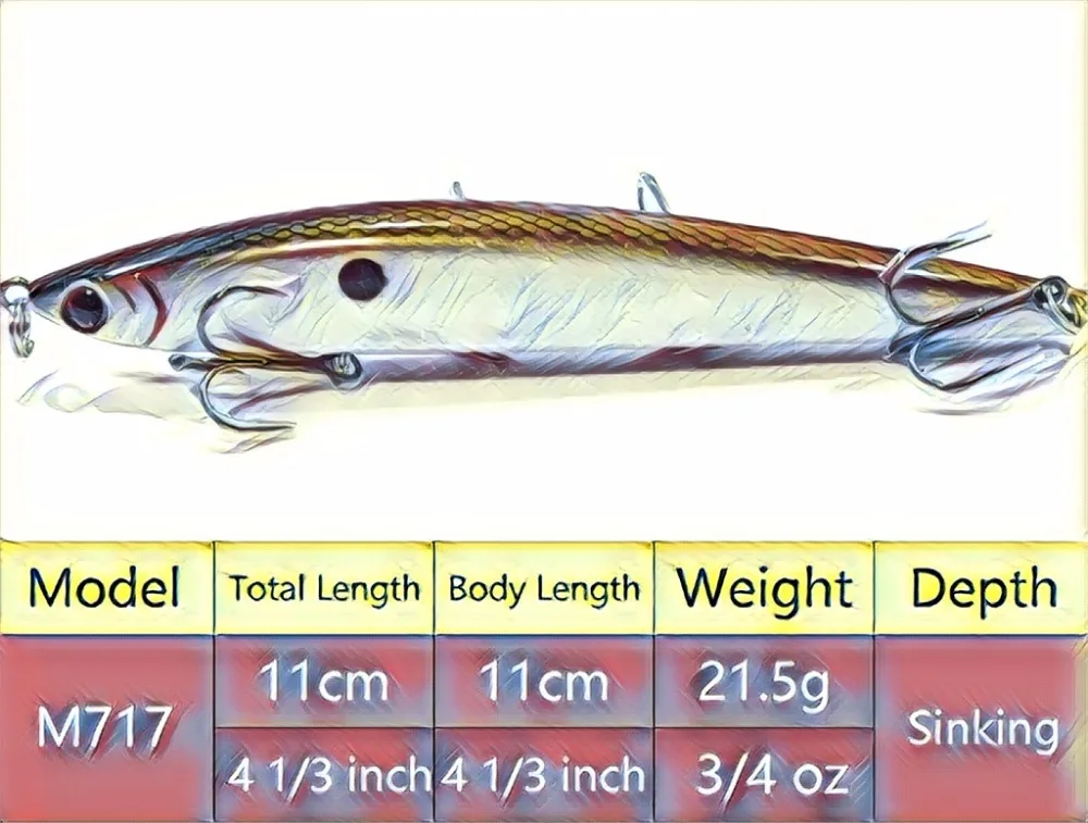 WLure-Cebo duro de 11cm y 21,5g para pesca, cebo duro de hundimiento pesado y fundición larga, con revestimiento epoxi para perro, M717