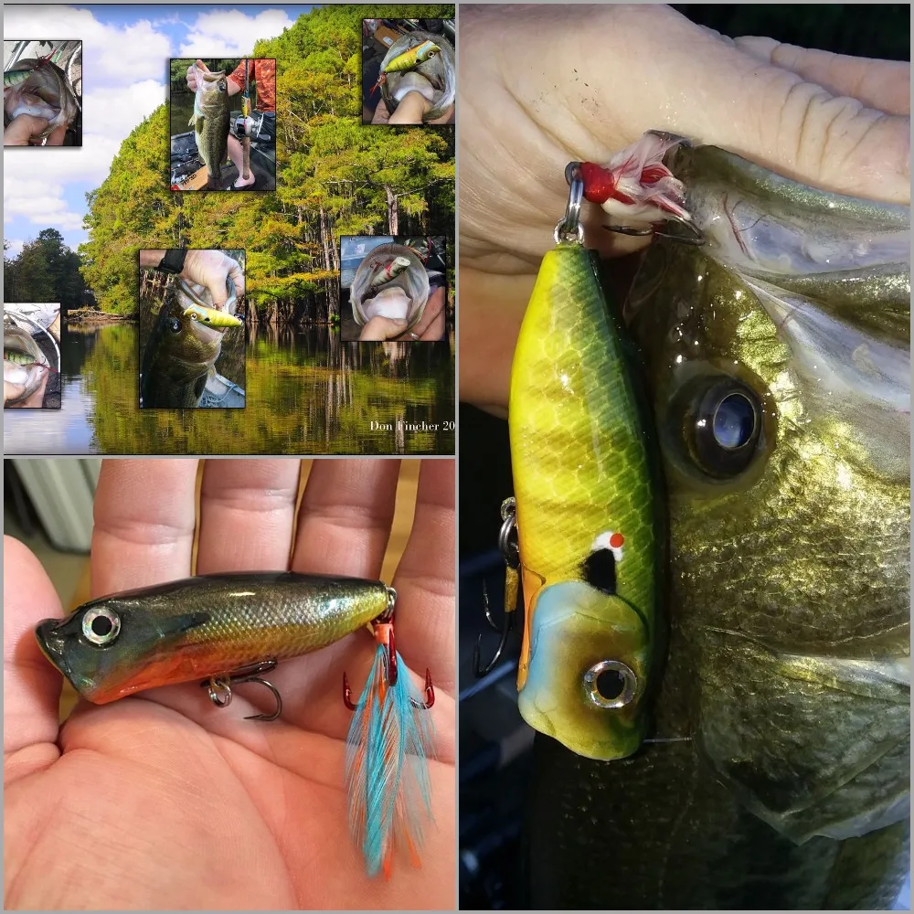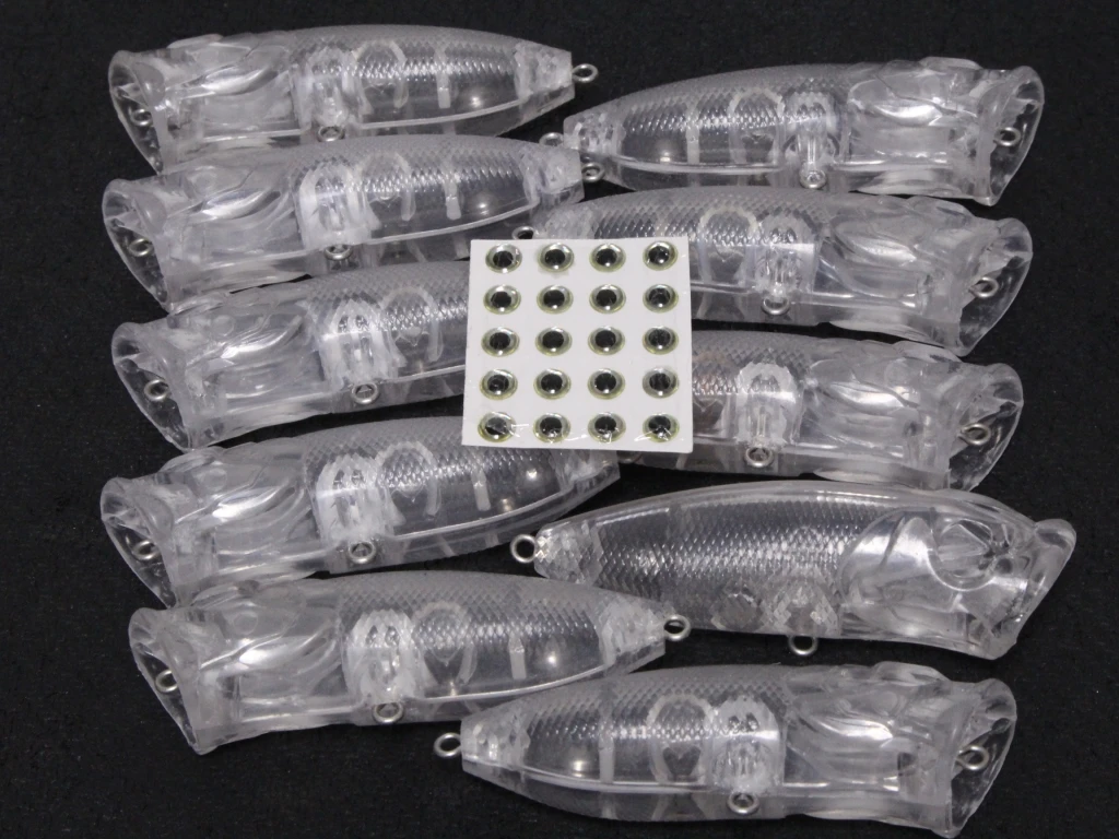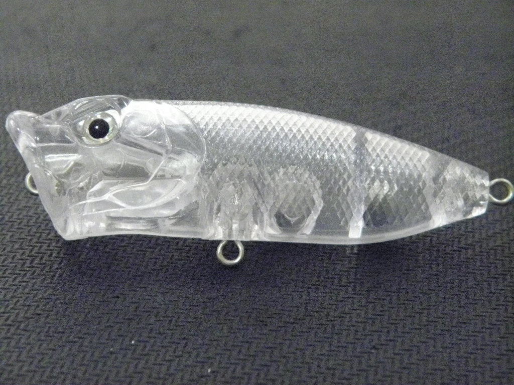 Longitud: 2 3/4 pulgadas (7 cm)Peso: 1/3 oz (9,4g)Profundidad: TopwaterTamaño del ojo: 5,5mm o 6mmTamaño del gancho: 6