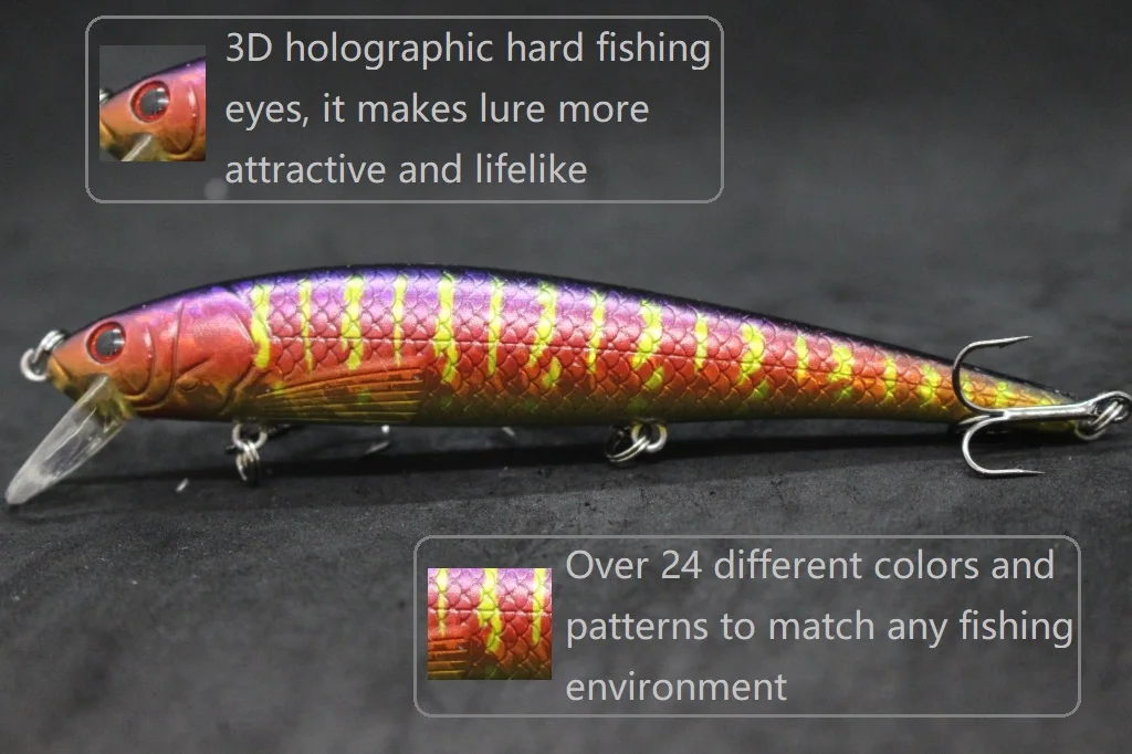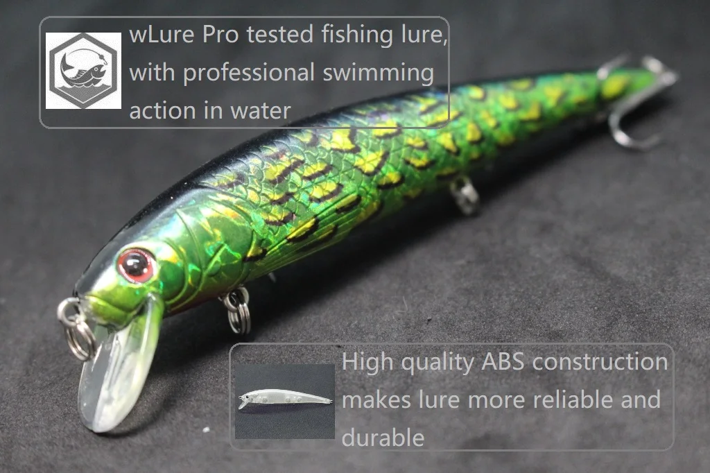 El señuelo está hecho de material ABS de alta calidad, lo que lo hace duradero y duradero.También cuenta con anzuelos triples curvados redondos de níquel negro, que proporcionan anzuelos confiables.Además, el señuelo tiene un revestimiento epoxi en el acabado, lo que aumenta su durabilidad y longevidad.